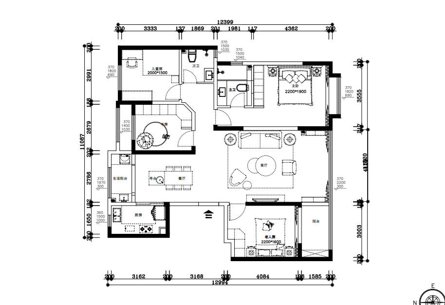 小区:龙湖源著 面积:180㎡ 户型:四居 风格:现代简约风格