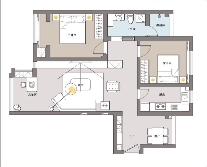 小区:绿城百合 面积:110㎡ 户型:二居 风格:现代简约风格