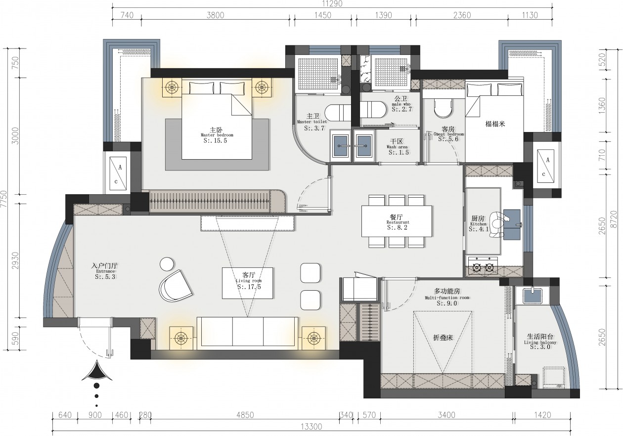 小区:郑东龙湖一号 面积:165㎡ 户型:平层 风格:现代简约风格
