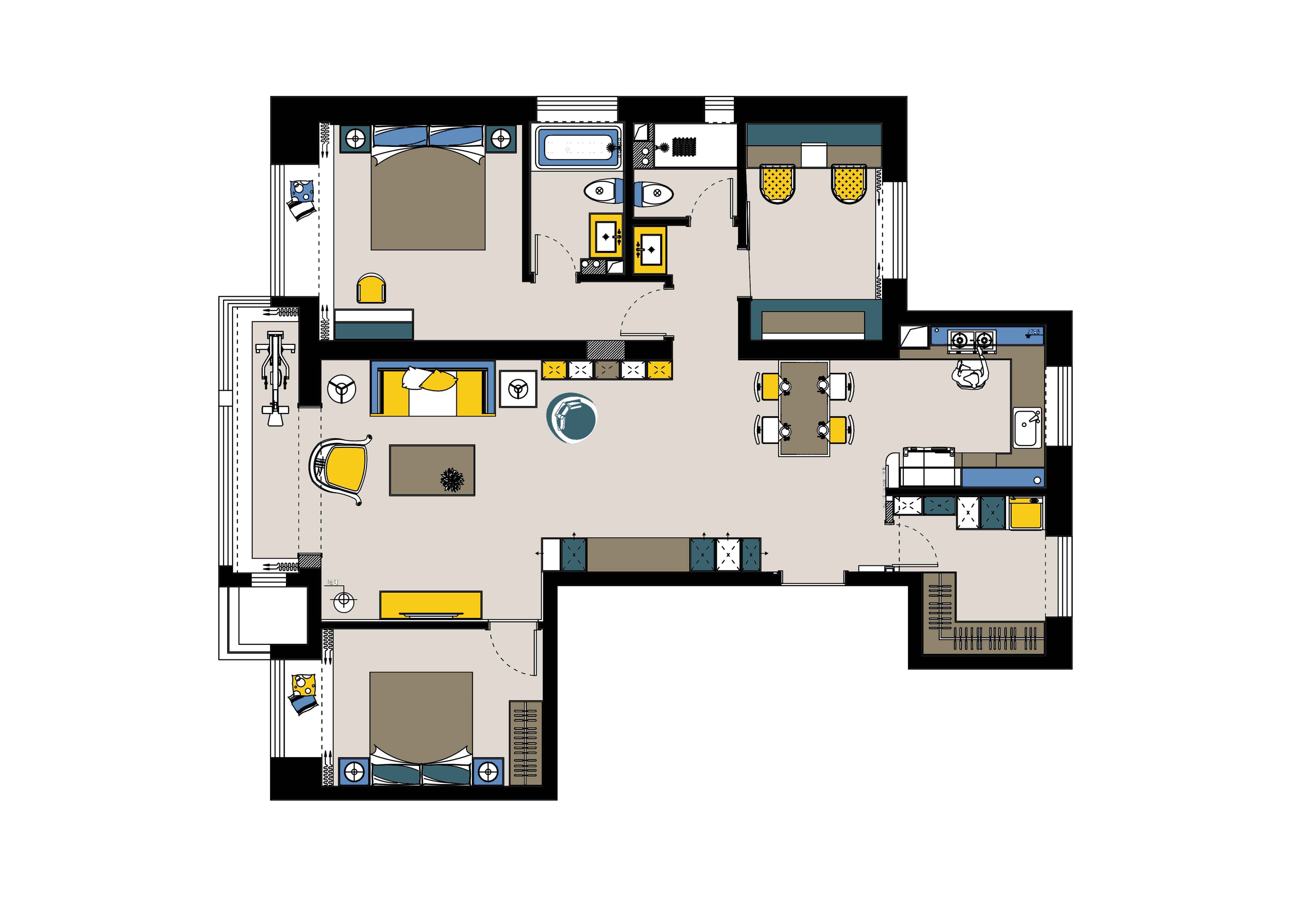 小区:中盟首府 面积:163㎡ 户型:四居 风格:现代简约风格