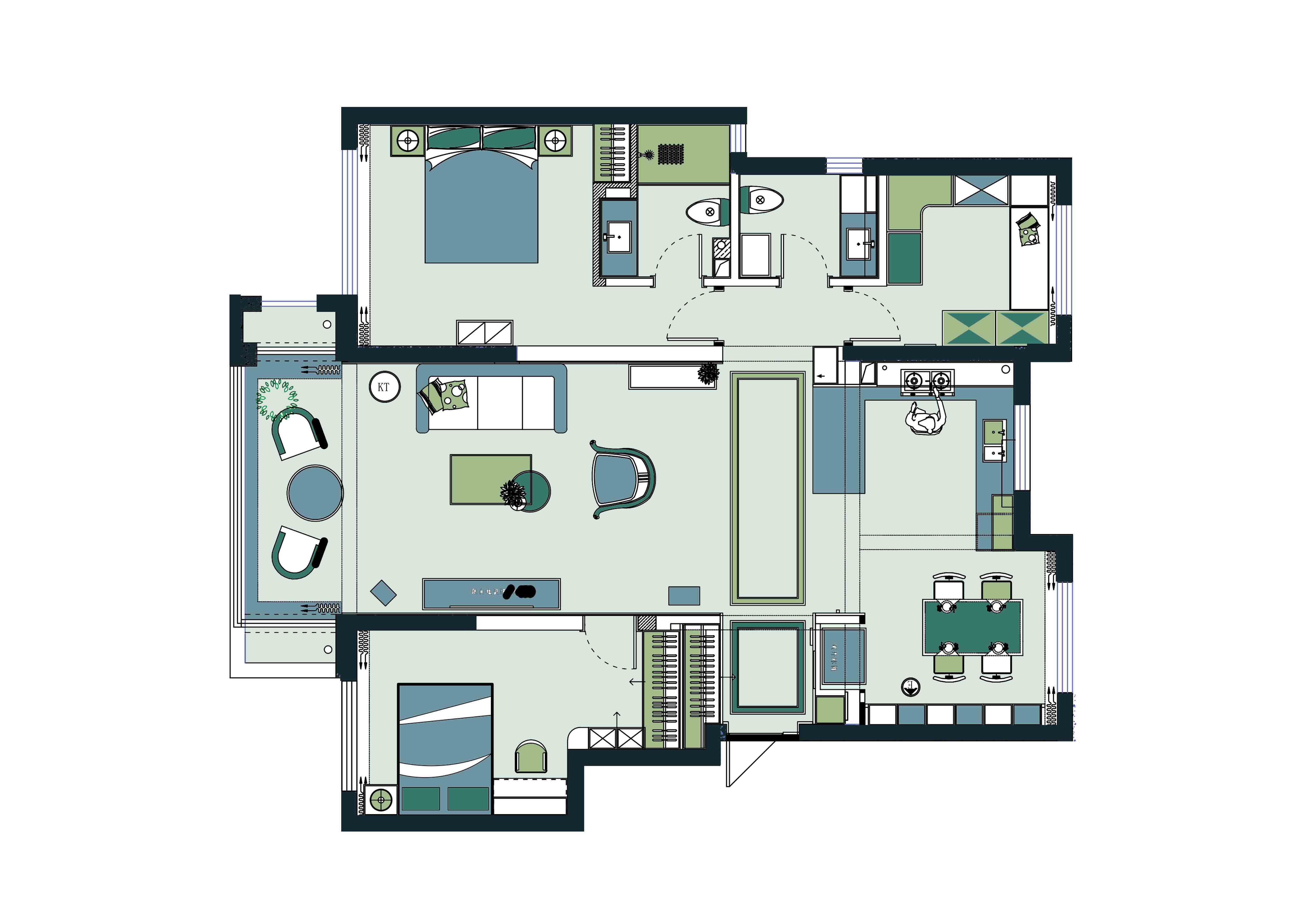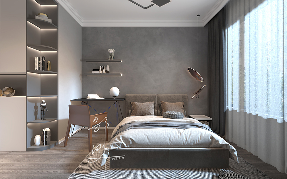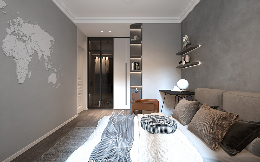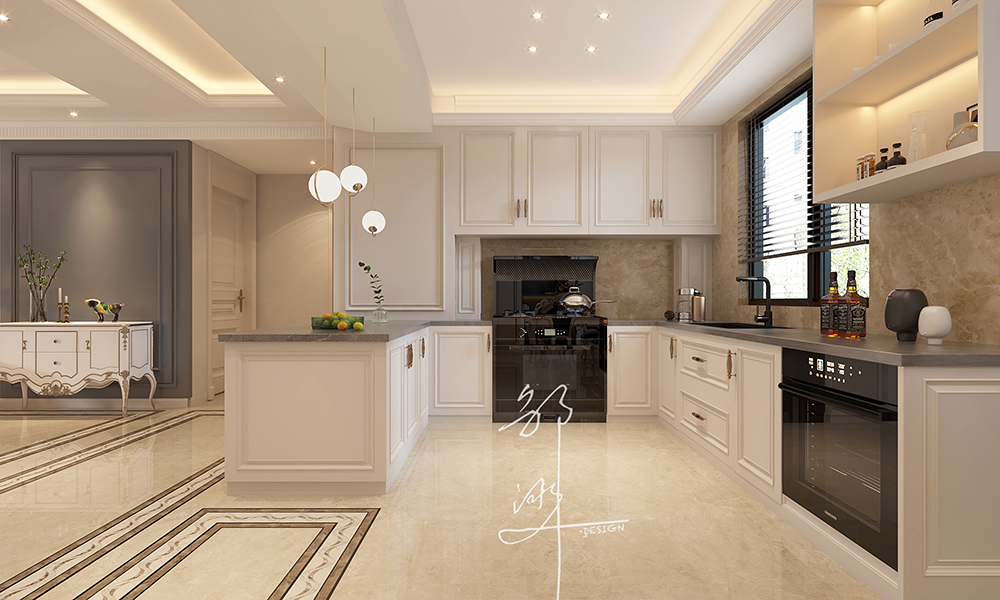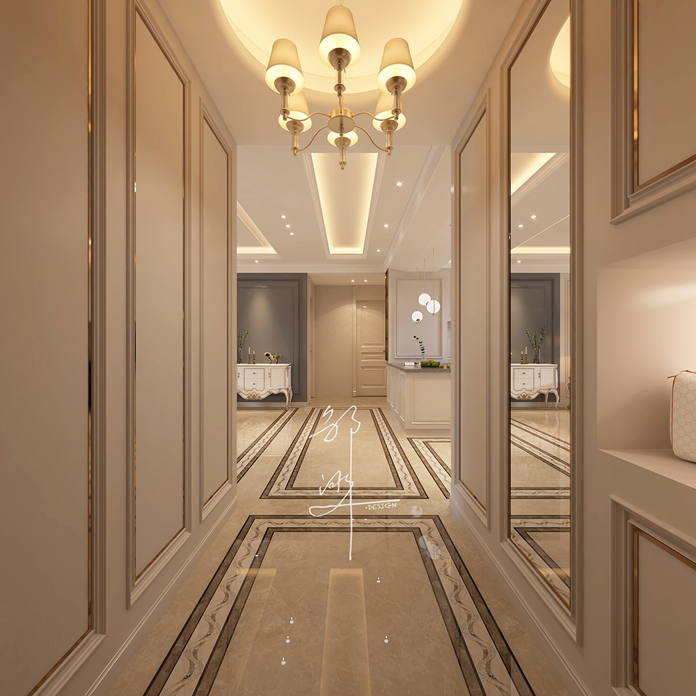 本方案采用法式轻奢风格,主要为奶油白色,软装点缀一些蓝色,再加上金属材料灯具的点缀,看似简洁朴素的外表之下却折射出一种贵族气质,这种大多通过精致的软装元素体现。法式轻奢风格演绎精致优雅,栩栩如生的造型,表达出优雅清新的韵味。整体布局和谐,干净纯粹、贴近生活。