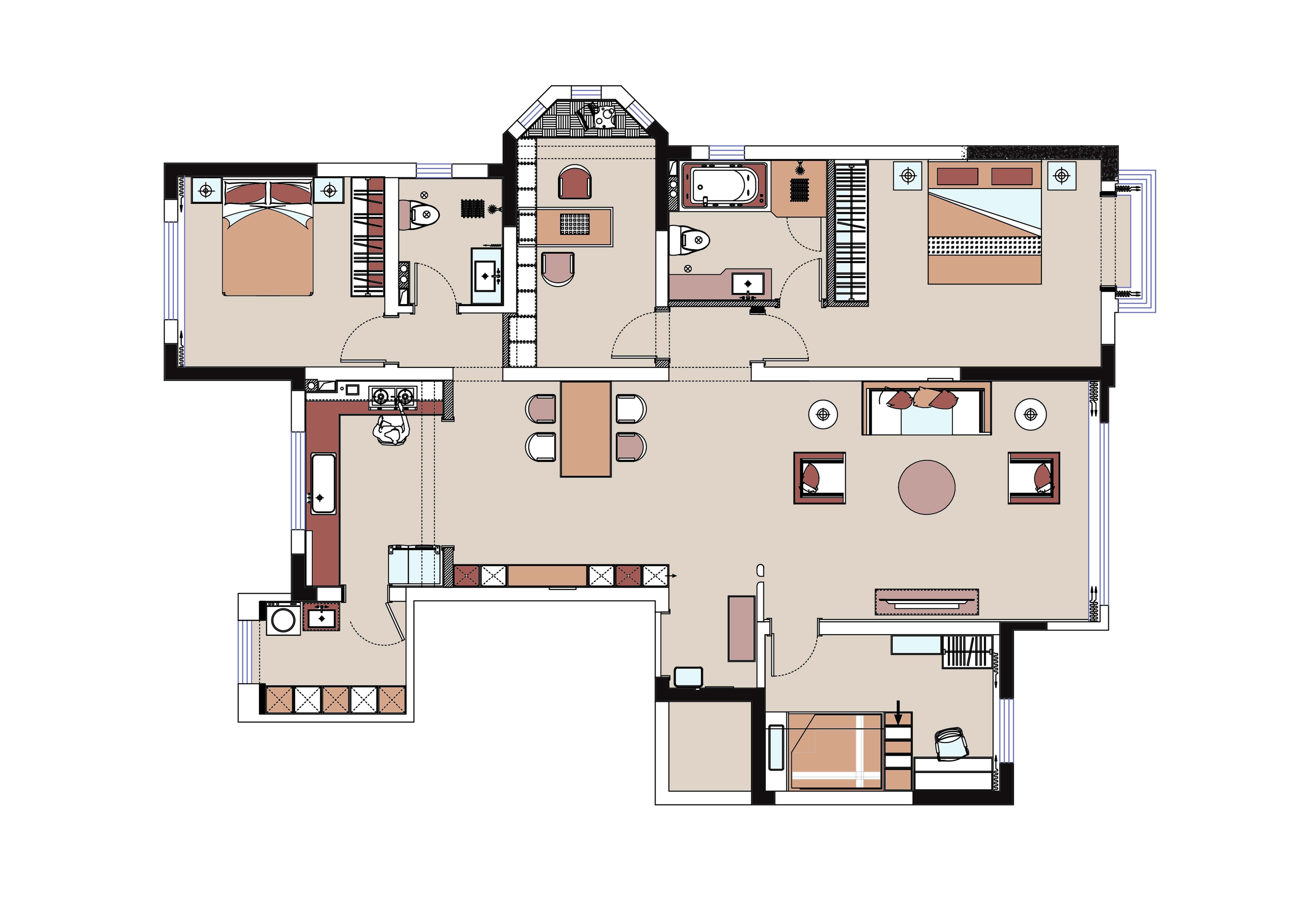 小区:宏润翠湖天地 面积:195㎡ 户型:五居 风格:现代简约风格