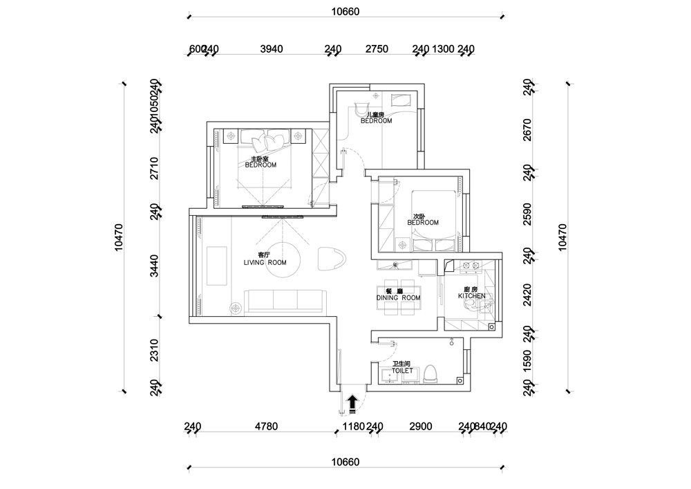 小区:建业枫林 面积:80㎡ 户型:三居 风格:现代简约风格