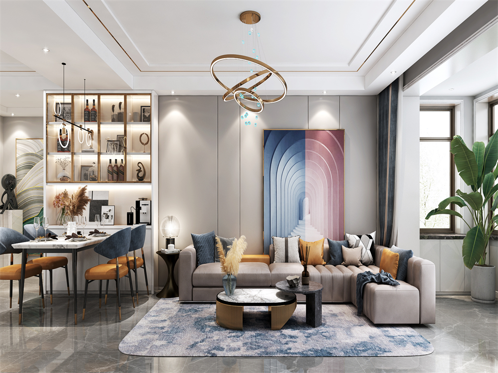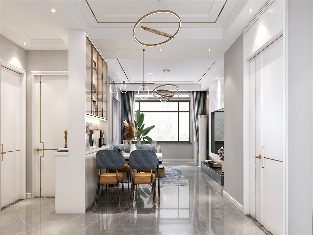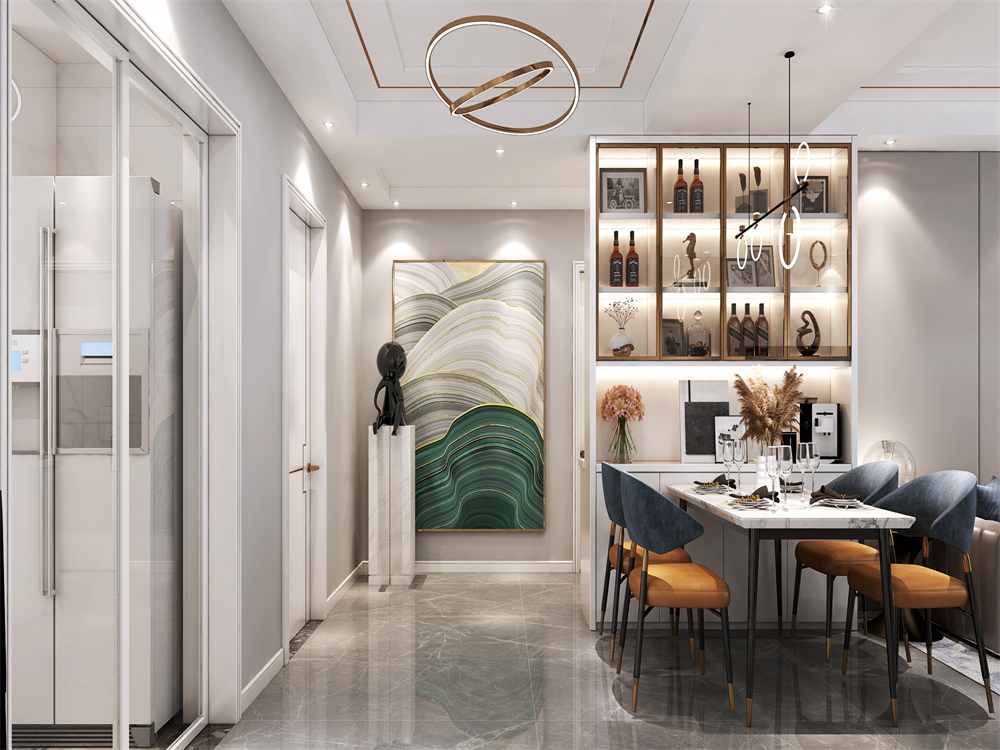 轻奢风格的空间以金属、皮革的中性色调为主,用色彩的纯度传递细腻的质感。造型简洁,线条流畅的家具组合搭配,营造出稳定、协调、温馨的空间感受,满足现代年轻家庭的轻奢需求。没有过于抢眼的造型,亦没有丰富色彩的叠加,而是以最典型的现代简约风格,令所有的色调统一,同时,细节处流露出精致的生活情调。