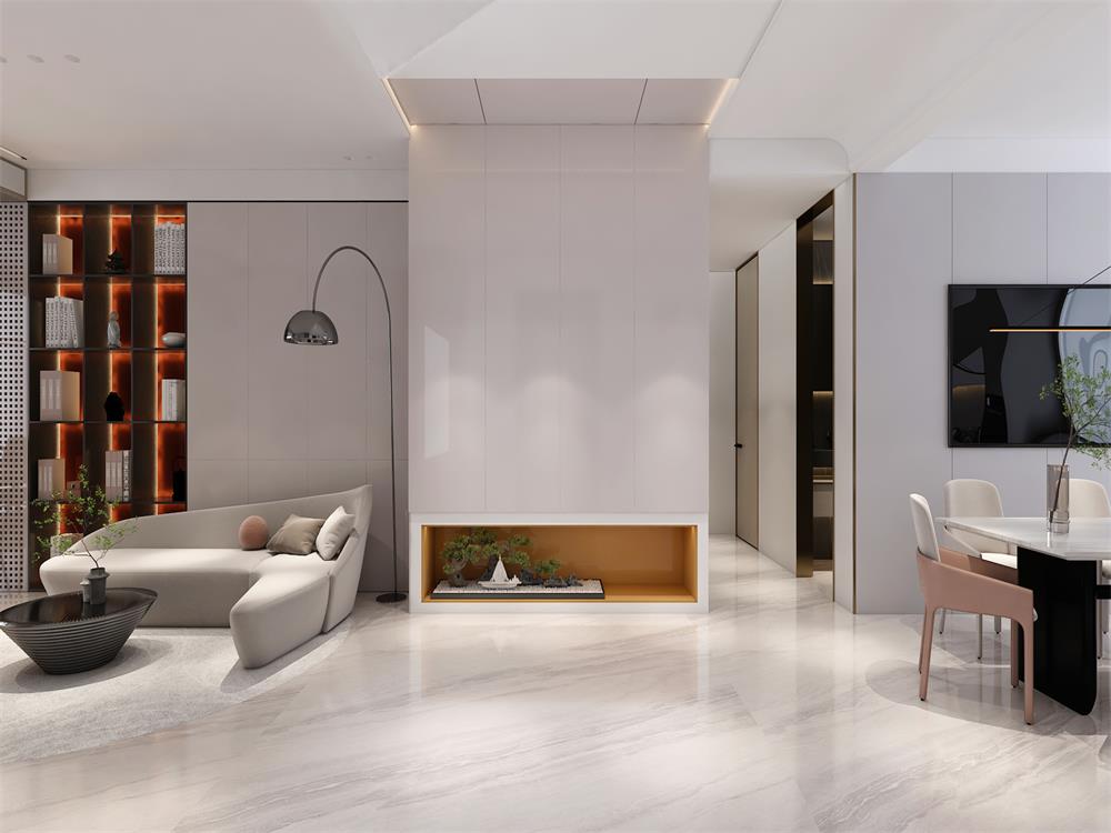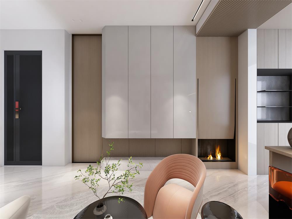 本案设计风格为现代简约风格,现代简约的色彩以浅色系为主,再使用木色点缀。每一种色彩都有自己的特点,产生不同的视觉效果,浅色是一种相对柔和、舒适的色调,采用木色的相互搭配,在视觉的效果上更加的富有层次感。