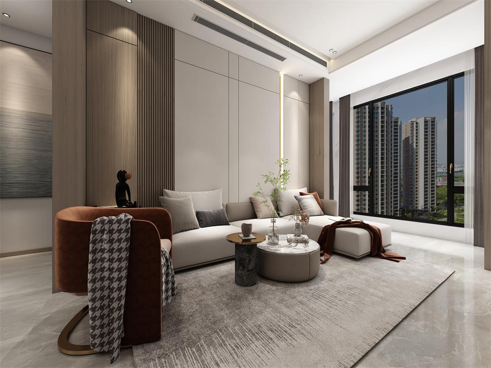 本案设计风格为法式轻奢风格,现代简约的色彩以浅色系为主,再使用木色点缀。每一种色彩都有自己的特点,产生不同的视觉效果,浅色是一种相对柔和、舒适的色调,使用木色作为搭配可以使现代简约的整体感更能体现出来。