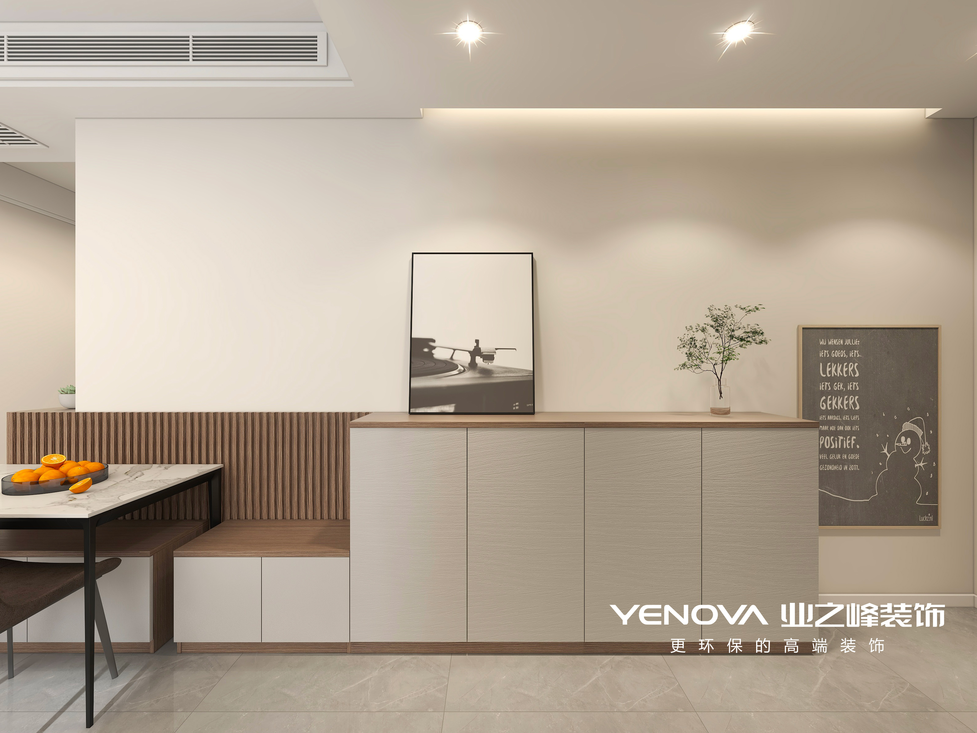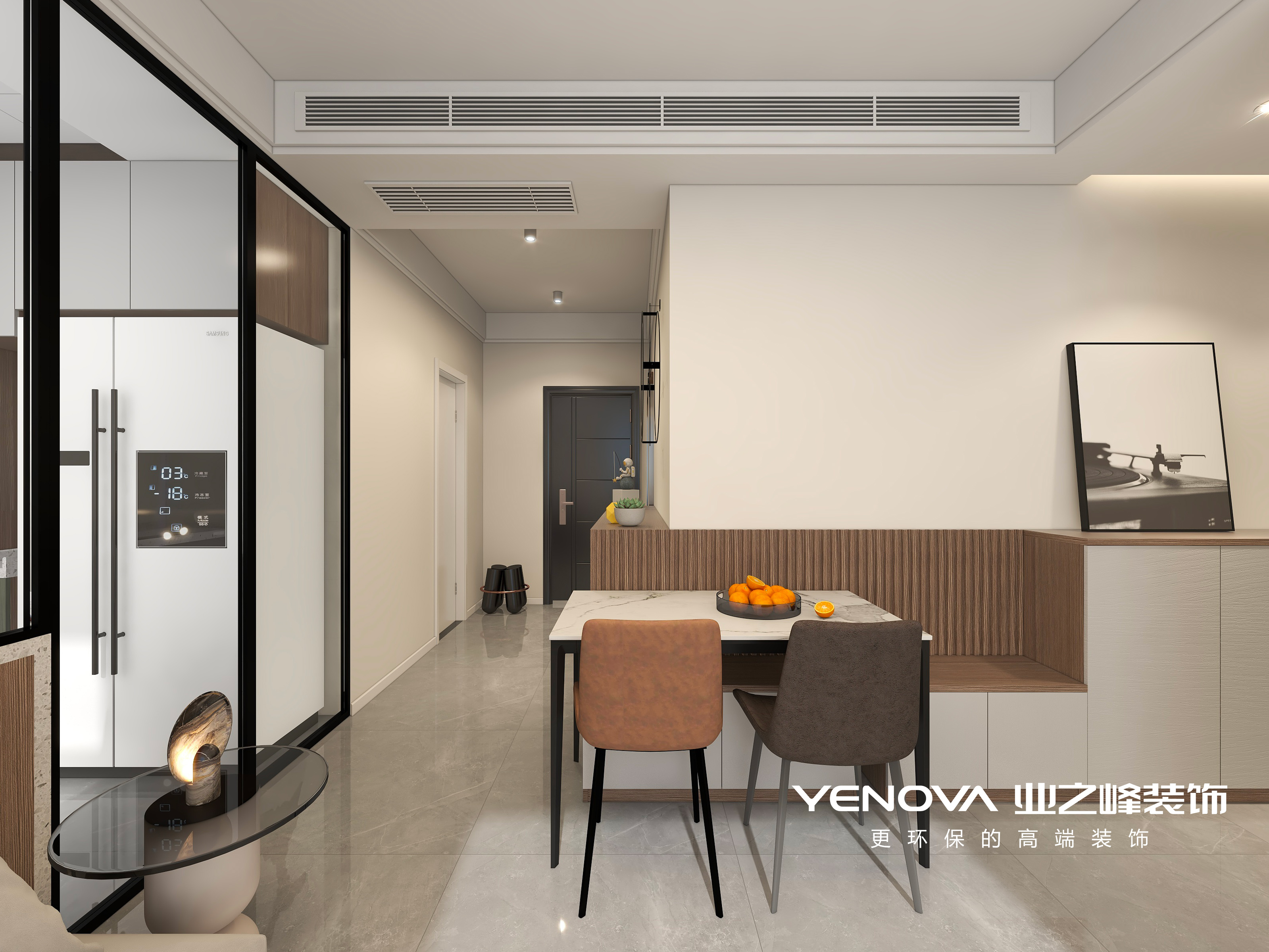 本案为市中心学区房,面积不大,但麻雀虽小五脏俱全,除满足正常功能外,多储物、宽敞明亮、多人吃饭等等问题留给了设计师来解决。玄关半高鞋帽柜、卡座、餐边柜及宝宝收纳柜连贯处理,及不遮挡实视线又满足了多功能与多储物的需求。半敞开式厨房让小户型做吧台有了可能性!三代同堂,其乐融融,陪读的学区房一样要有仪式感,一样要舒服美观。