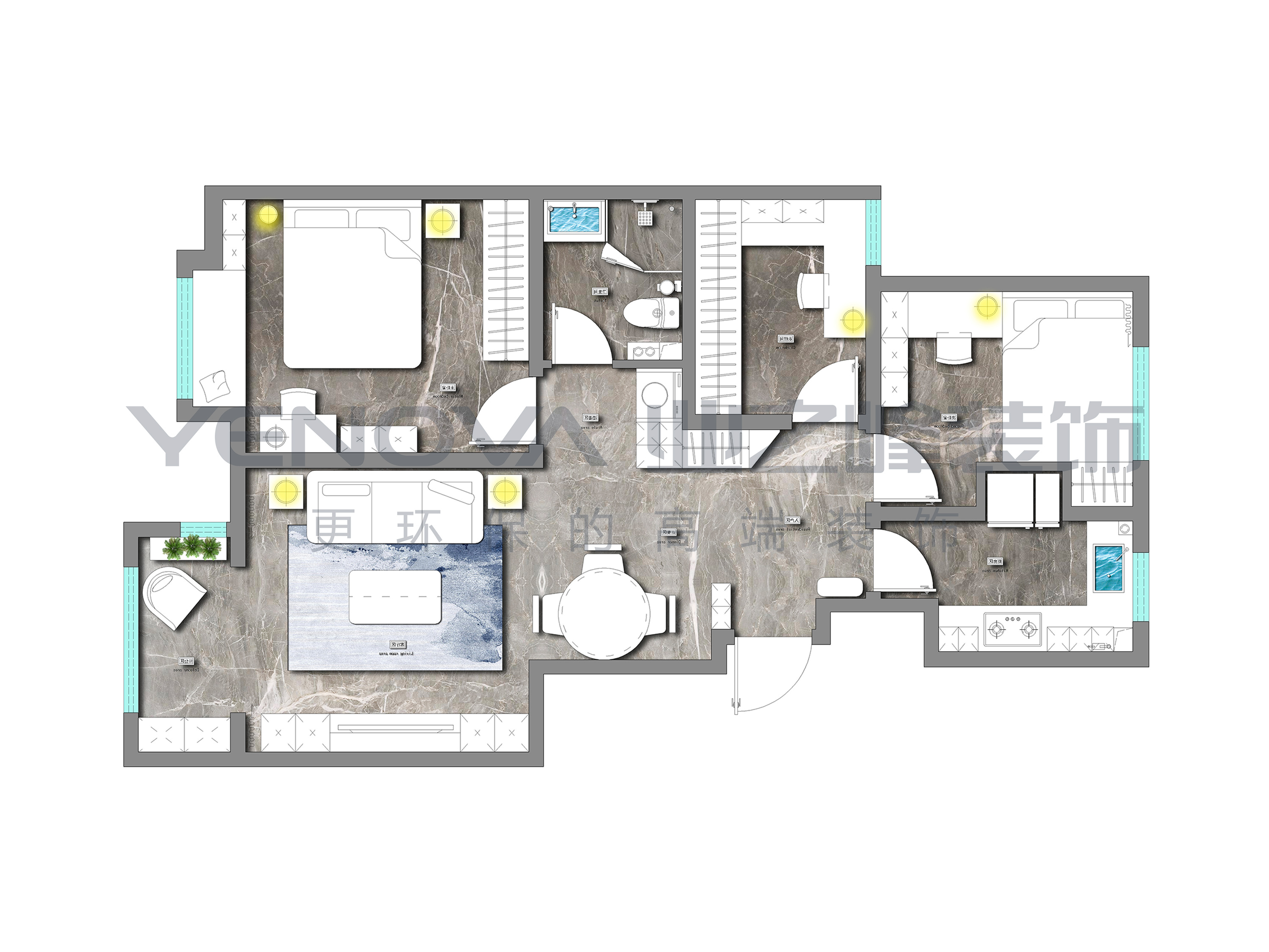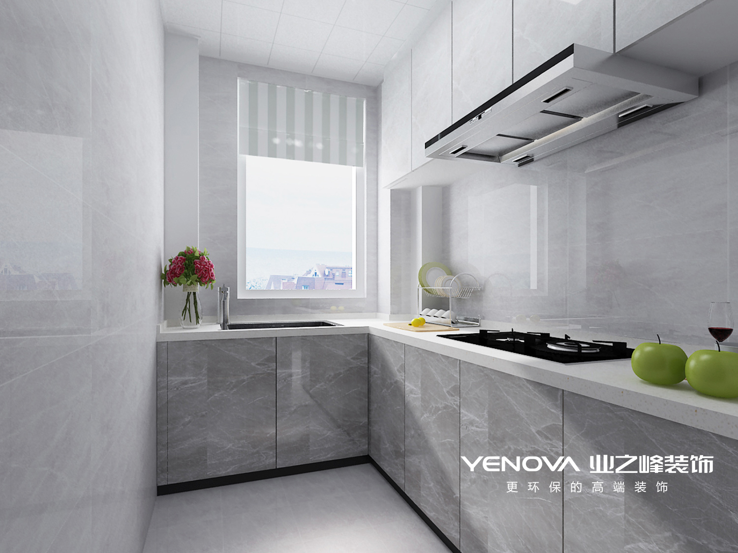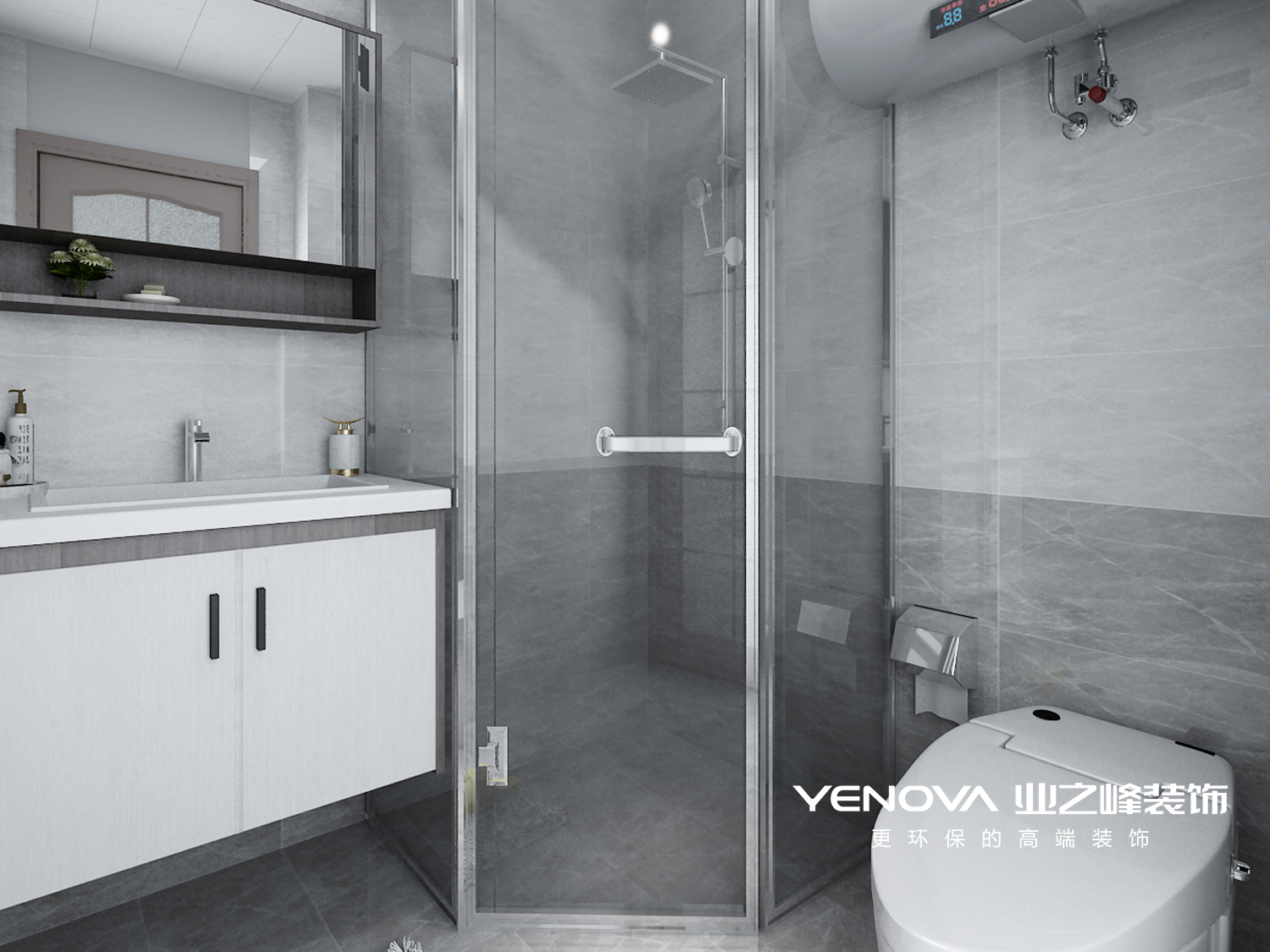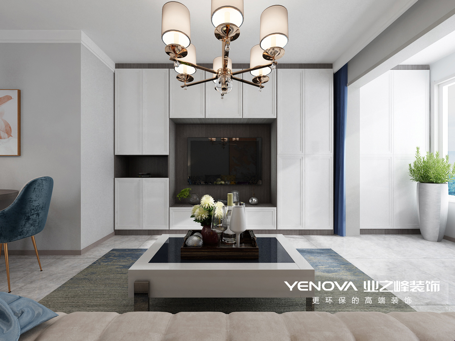 客厅区电视墙定制柜体的运用,满足后期多变的储物需求,地面整体采用瓷砖,利用瓷砖光面的反射,增加整间居室的亮度明度,厨卫主要以功能性为主,满足基本日常使用的情况下,用色彩表达对生活的憧憬和向往。