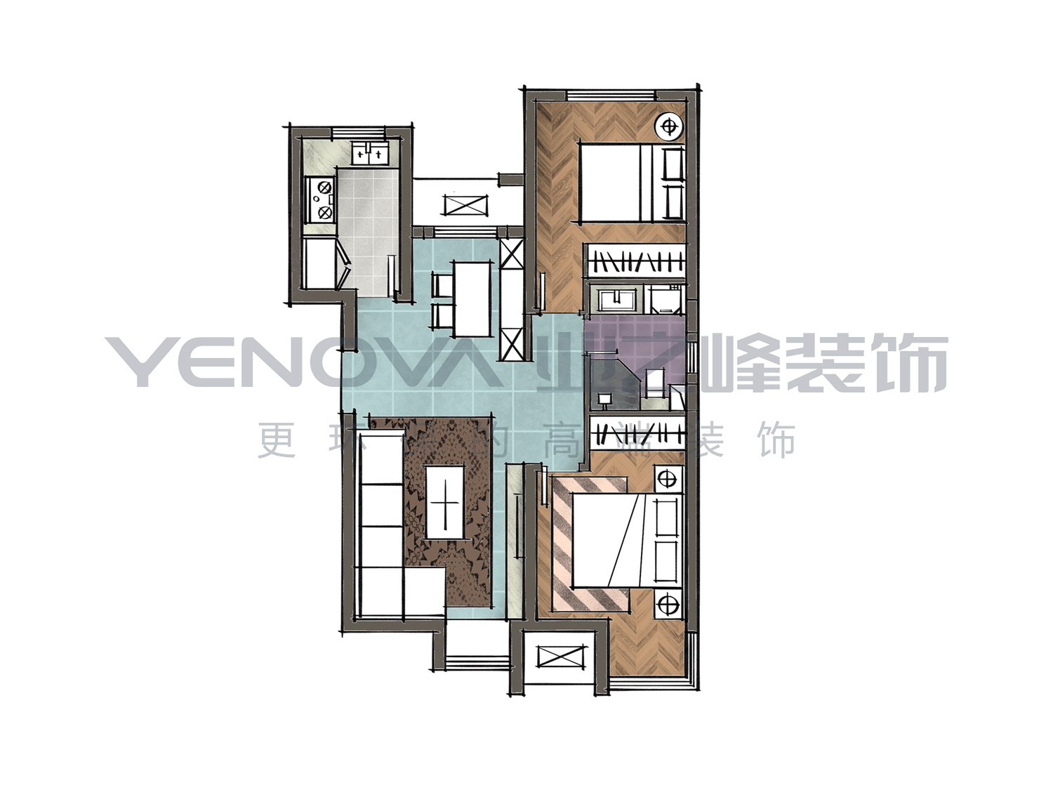 97㎡二居新中式风格融创中心
