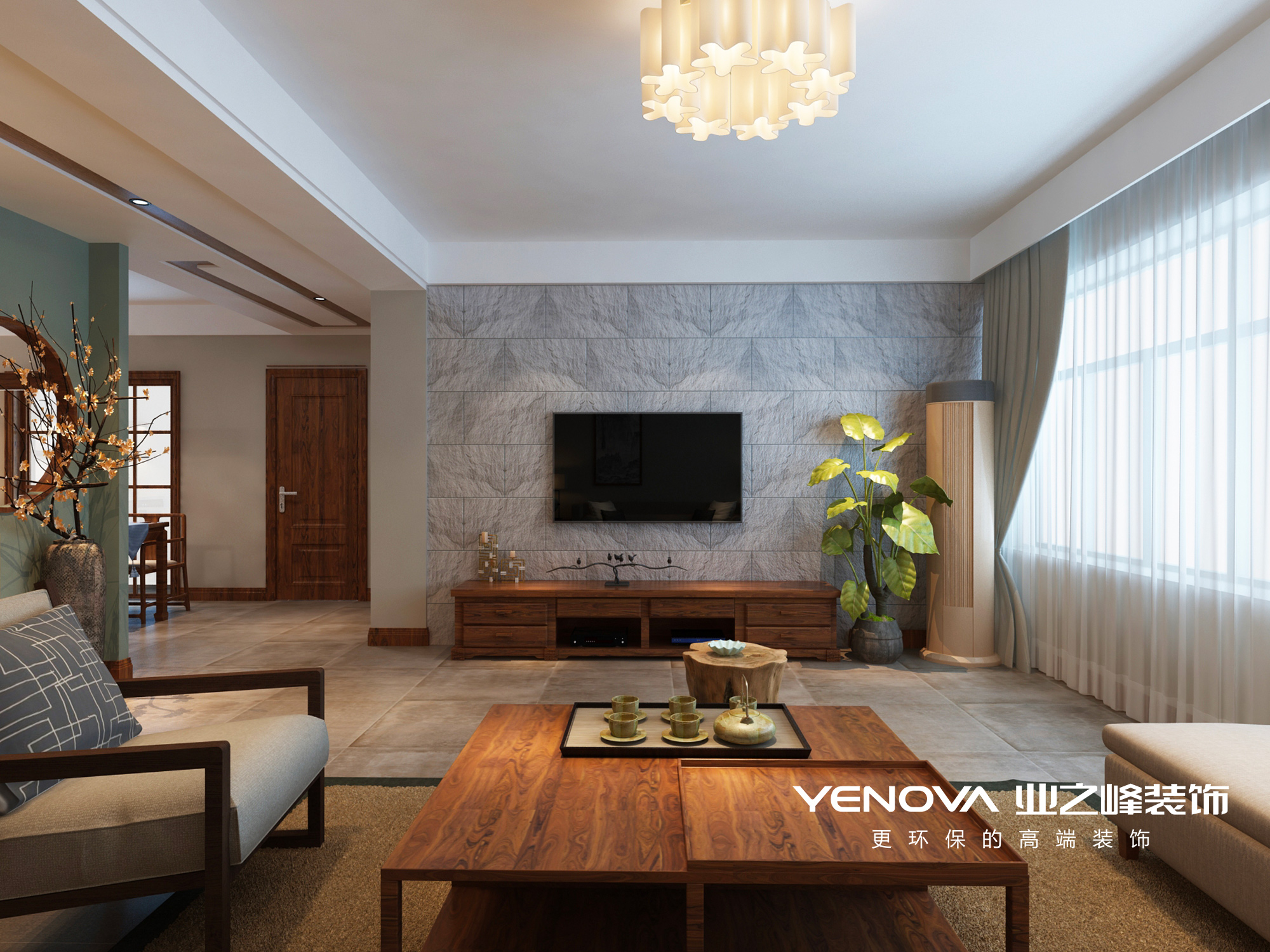 新中式风格;客厅装修效果图;电视背景墙;