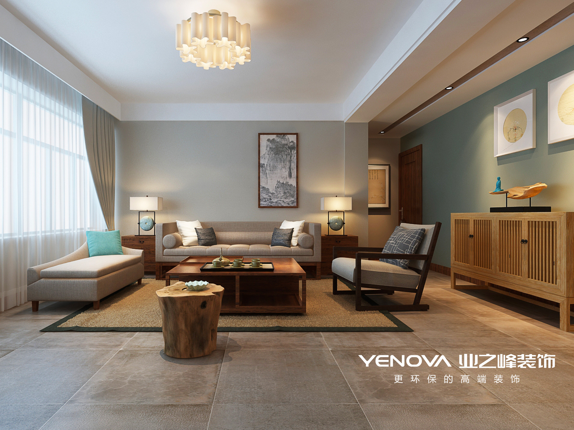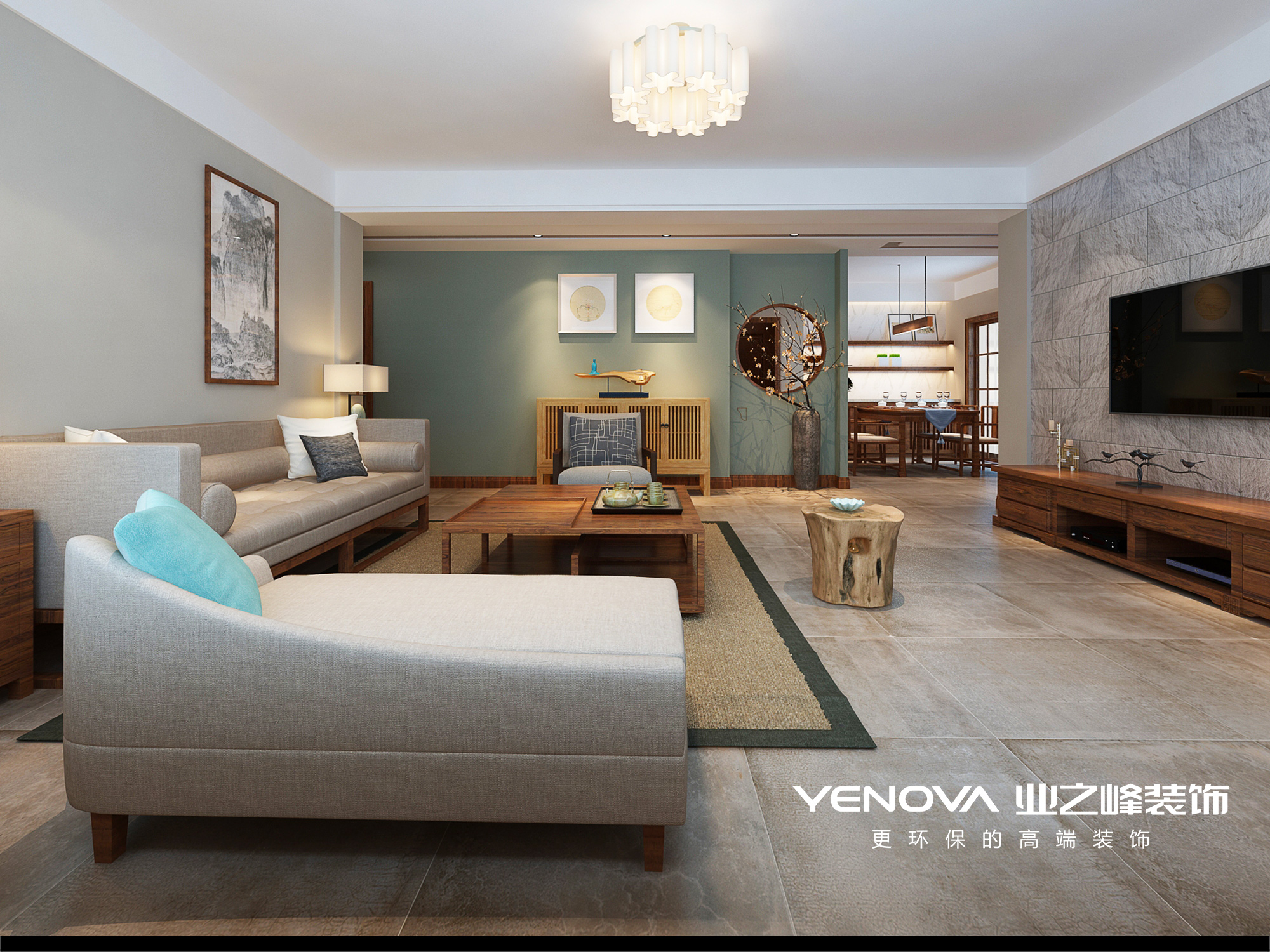 新中式风格;客厅装修效果图;沙发背景墙;