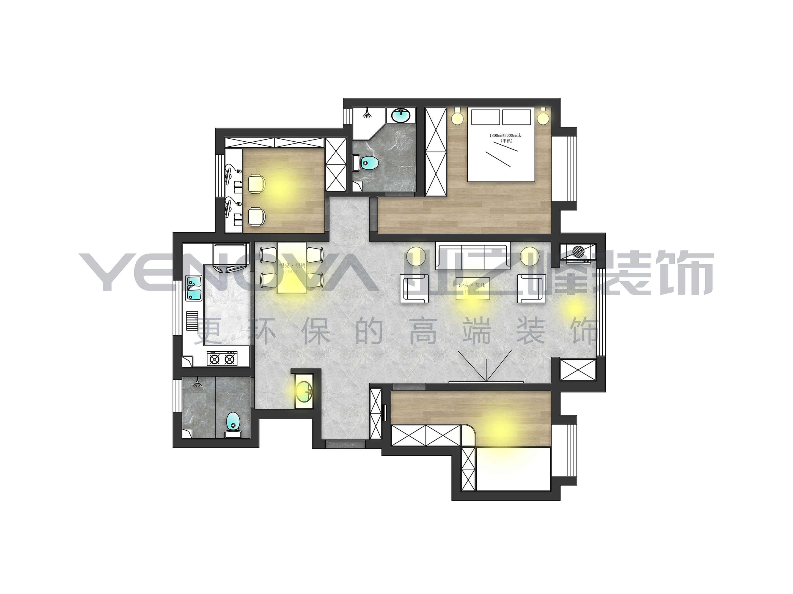 110㎡三居现代简约风格联发锦里