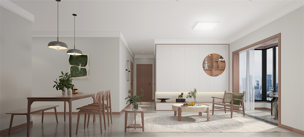 在混搭流行的现代,这种简单实用的风格在小居室的设计中将优势发挥的淋漓尽致,家具选择首重简洁实用,同时崇尚原木韵味,绿植搭配寓意美好的幸福树,正反映出现代都市人回归自然的追求。