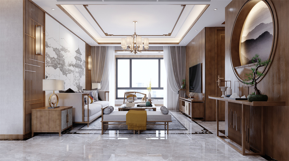 小区:鹿港滨海湾 面积:128㎡ 户型:三居 风格:新中式风格