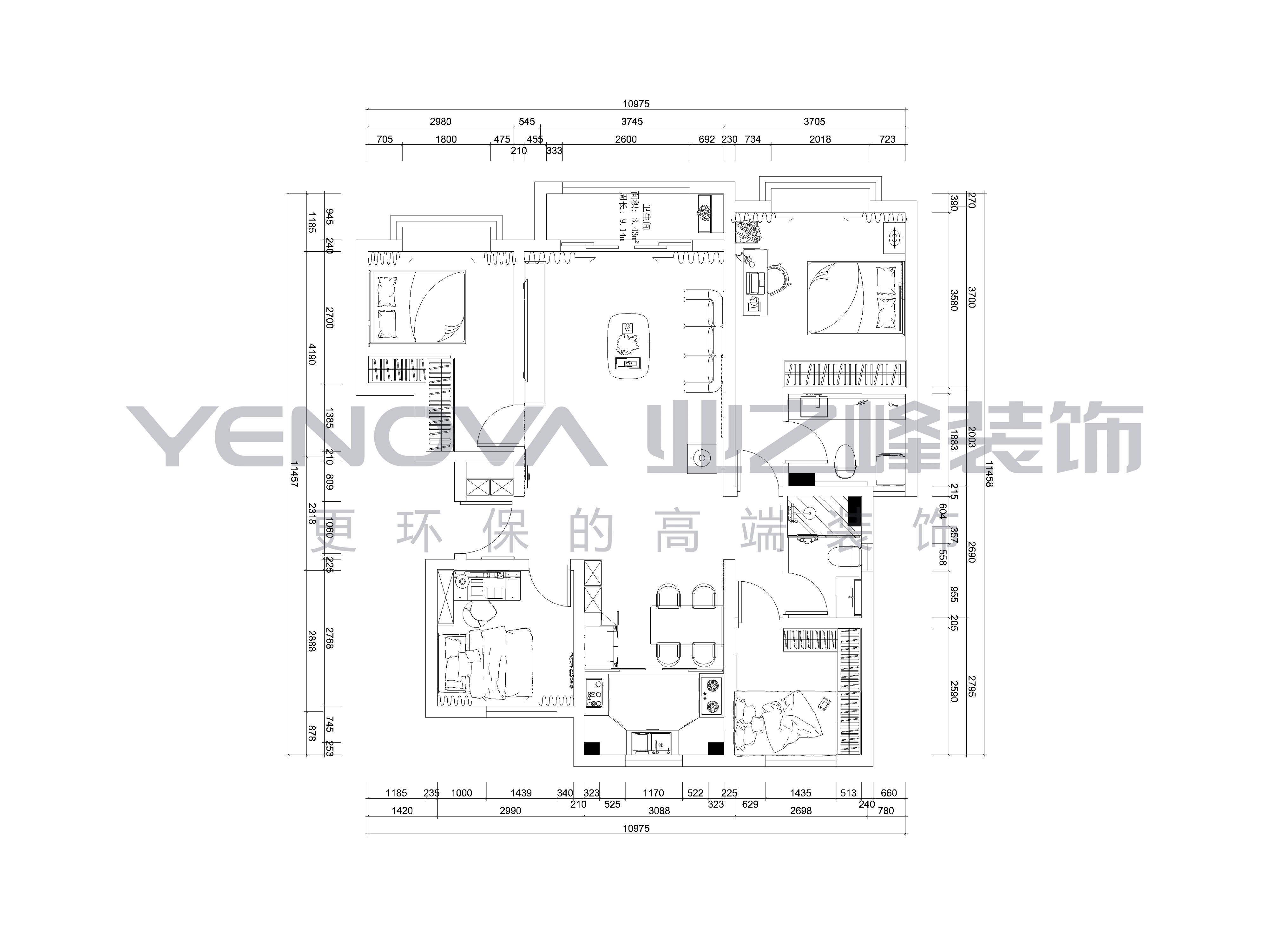 125㎡三居现代简约风格昆仑御