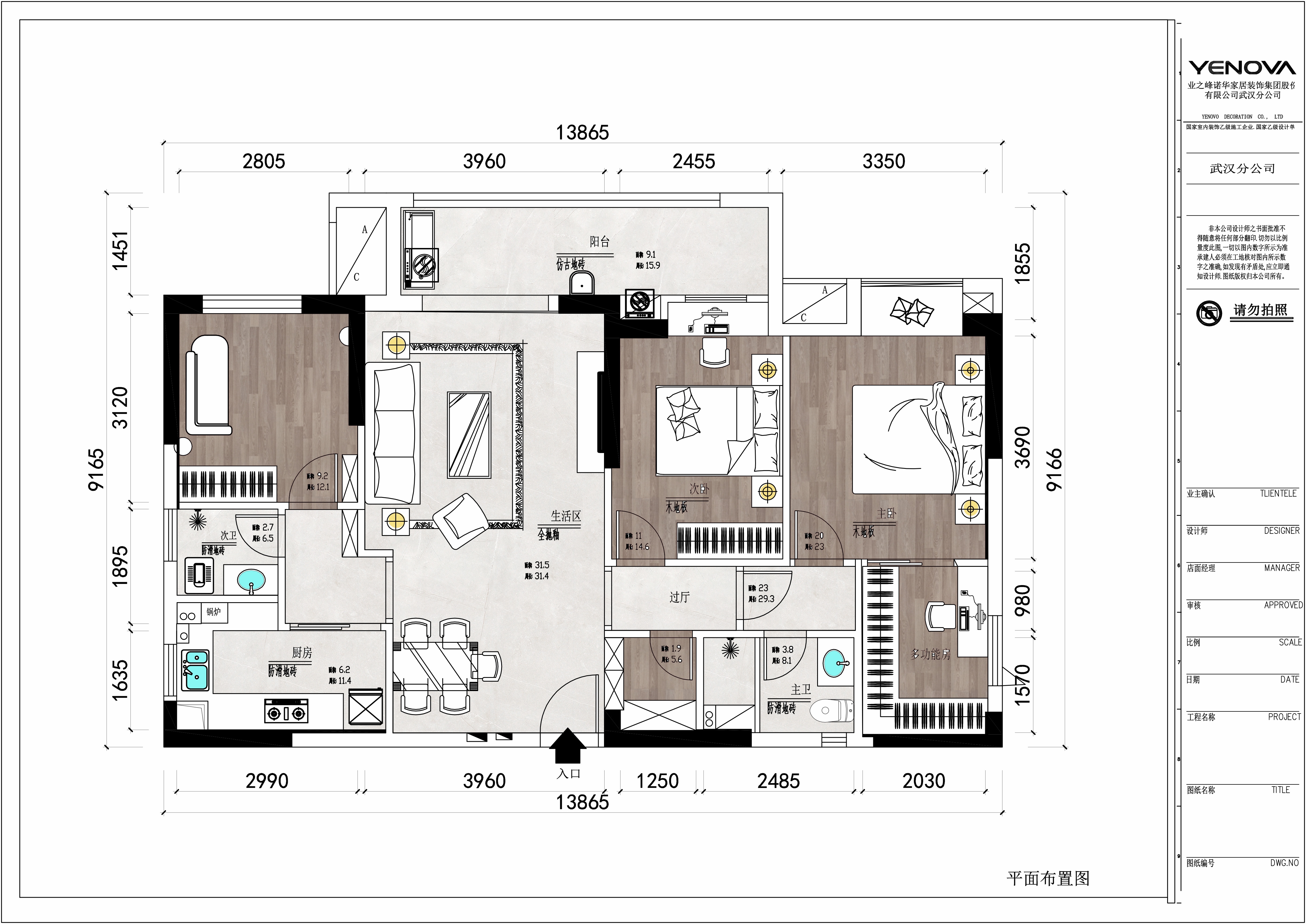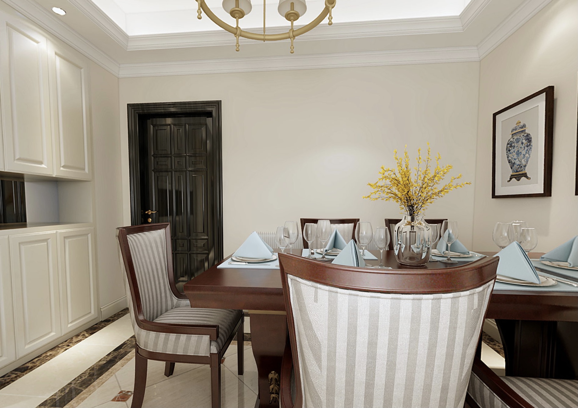 小区:天宇盛世滨江 面积:135㎡ 户型:四居 风格:美式风格