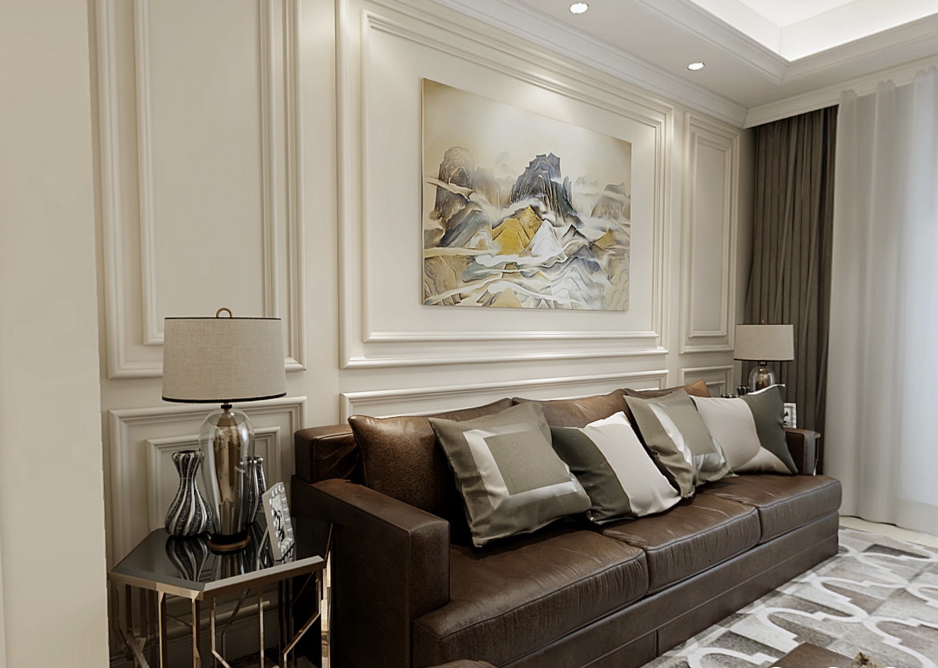 轻装修,重装饰,小美式家具和配饰占整个装修最重要的部分,业主想要既要延续美式的风格,又要体现个性化。所以在硬装部分尽量简单,减少了墙围之类,墙地面、门窗,大都以浅色为主,重点放在了后期的家具和饰品搭配上。