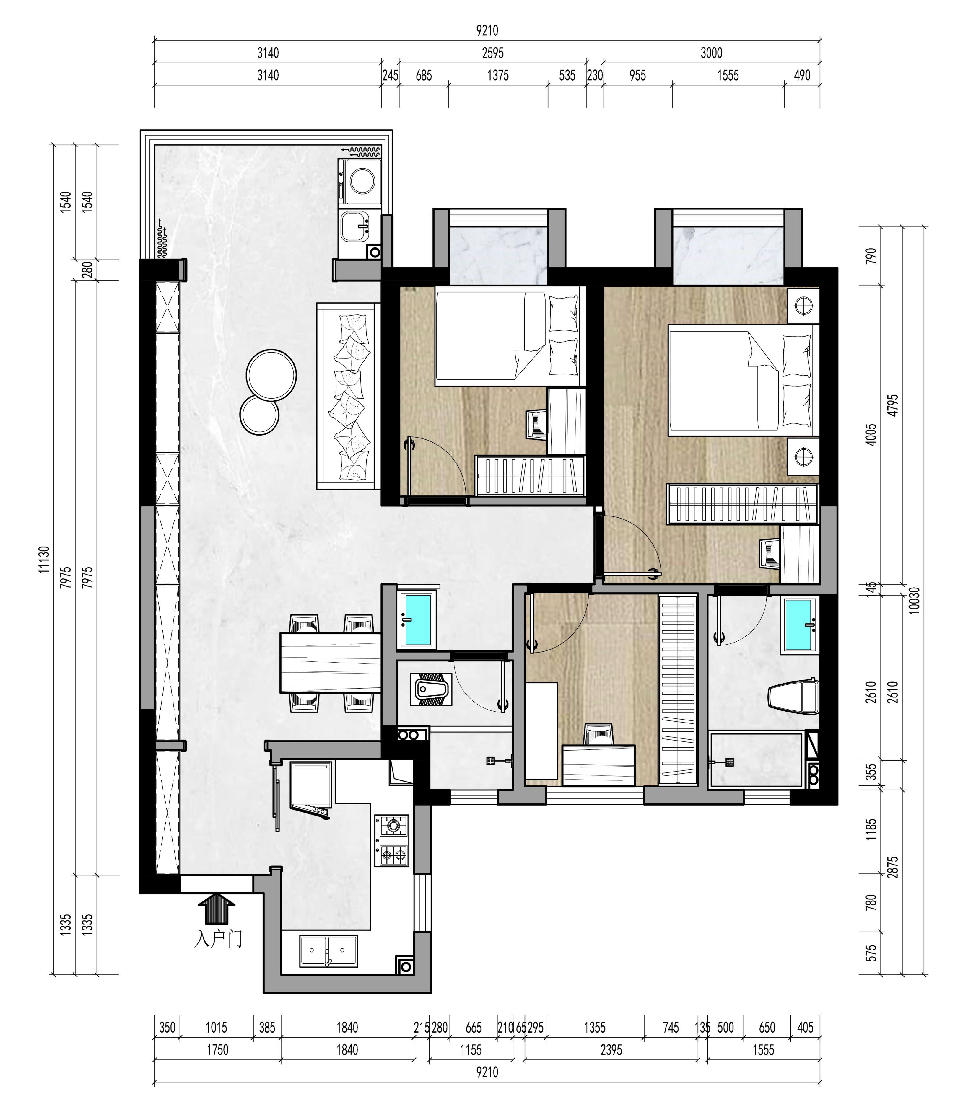 业主医务工作者,喜欢简单的感觉,素雅的感觉,很喜欢原木的颜色,所以设计思路往日式走,敲定日式的风格呈现素雅的感觉,客厅从入户到阳台做满墙的柜子,又和餐厅走道客厅互相呼应,兼顾储物与效果,软装搭配亚麻布艺,凸显质感