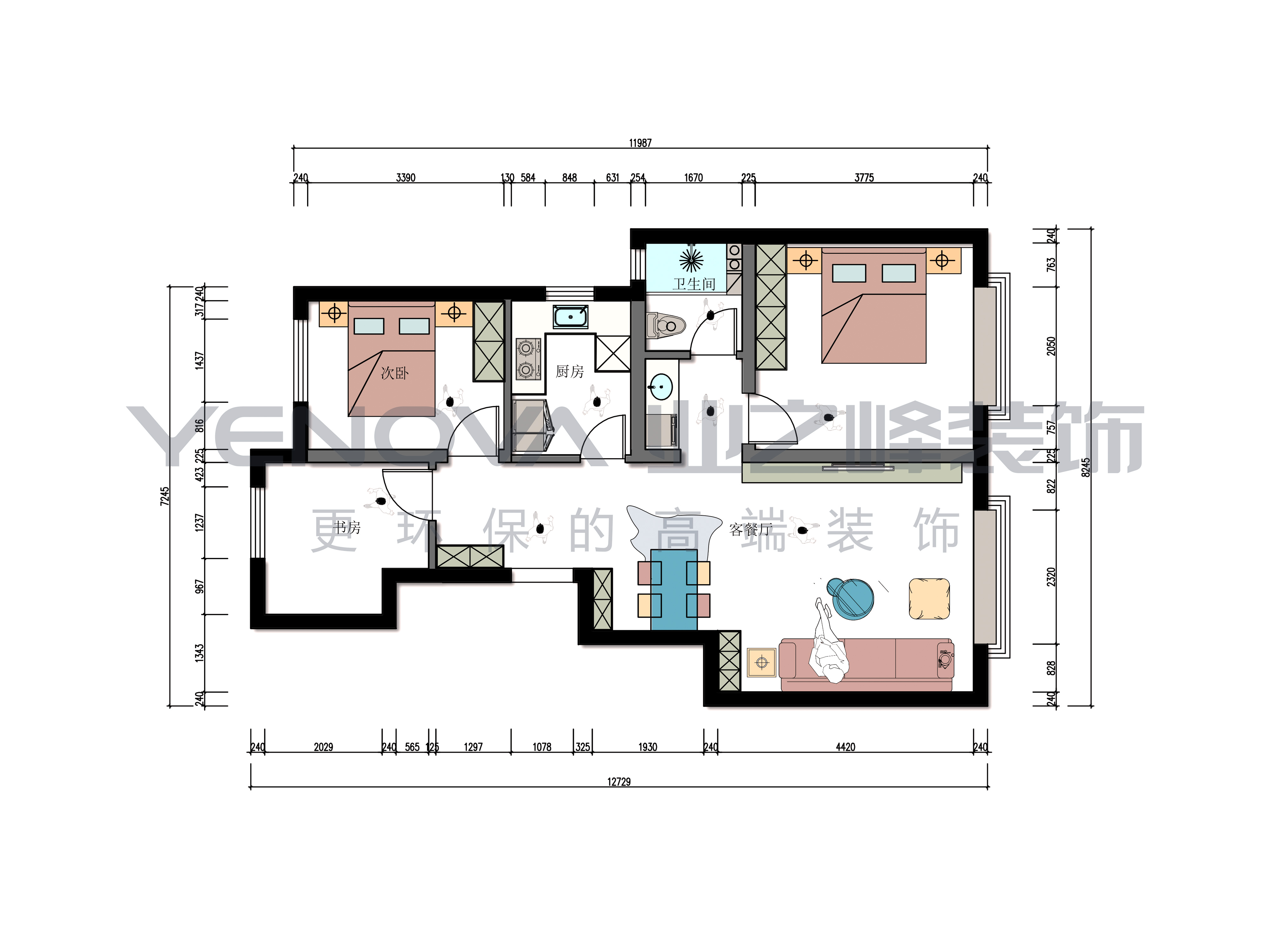 本案虽然是简约风格,但对色彩、材料的质感要求很高。我们给业主简洁、实用、省钱的装修重点。但是在经济、实用、舒适的同时,也体现了一定的文化品味。本案简约风格不仅注重居室的实用性,而且还体现出了工业化社会生活的精致与个性,符合业主的生活品位。
