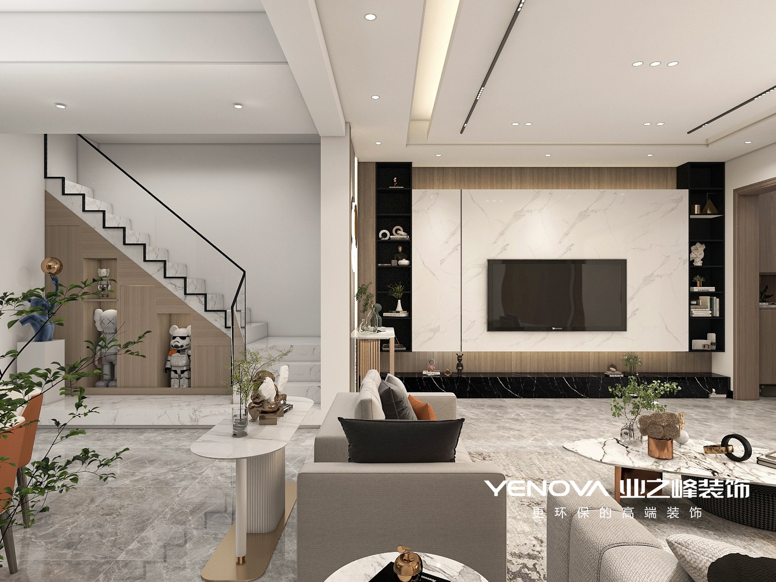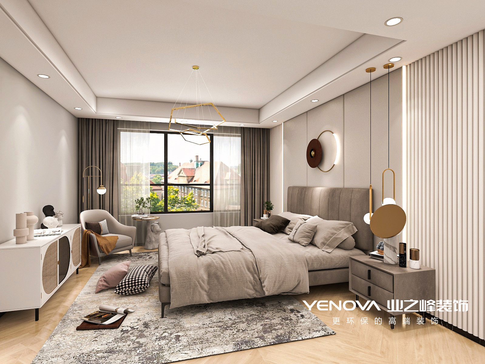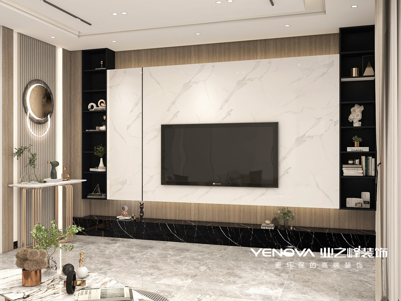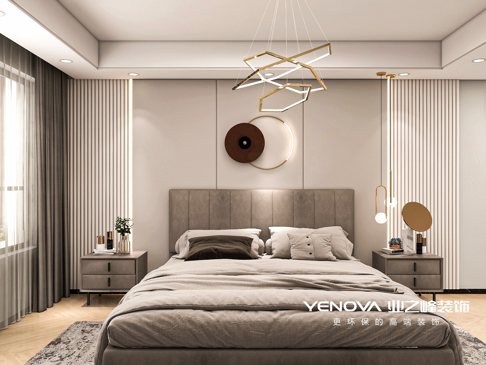 本案的色彩搭配是家居空间的基调,轻奢氛围的体现,需要合理搭配色彩,才能展现出丰富的魅力。驼色、象牙白、奶咖、碳灰、黑色等都是轻奢风格中常用的色彩,可以营造出空间的高雅调性,质感更为饱满、时尚。化繁为简,是轻奢风格的另一大特色。在空间布局上,轻奢风格强调留白处理,简约而有考究的布局强化了美观和实用性,不再拘泥于复杂的造型和繁复的雕花凸显精致和轻奢,令空间简约而不简单。所谓轻奢,并不是一味追求质感而忽视生活的舒适度,而是在有所取舍的基础上,利用设计手法营造出家的温馨。线条勾勒的空间,巧妙设计凸显艺术气息,家不仅高雅美观,还舒适温馨。现代轻奢风格的家居空间中,饰品的选择也是非常有考究的。灯饰、摆件、挂饰等等多选择金属、玻璃等材质的,强调质感的体现,视觉呈现上更加高级。