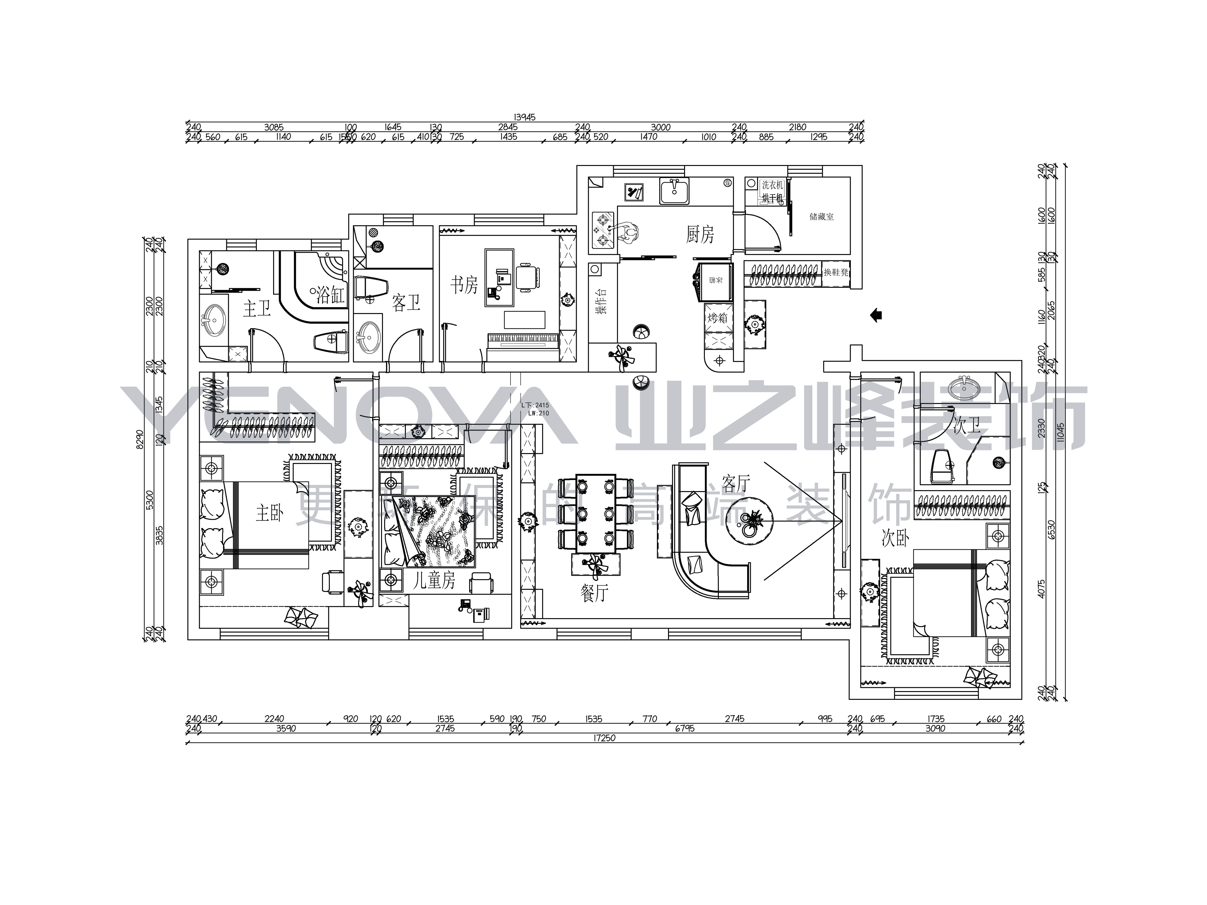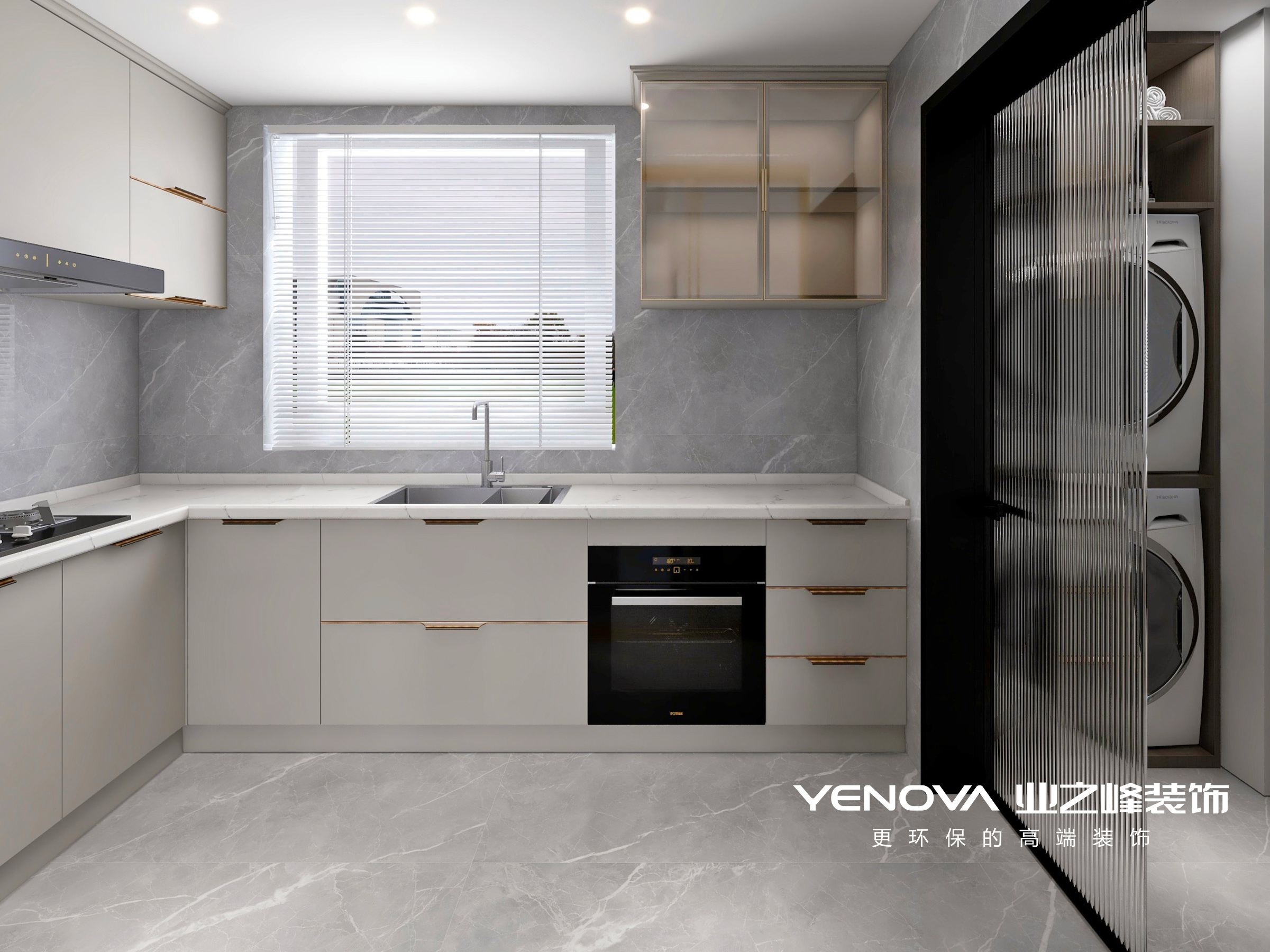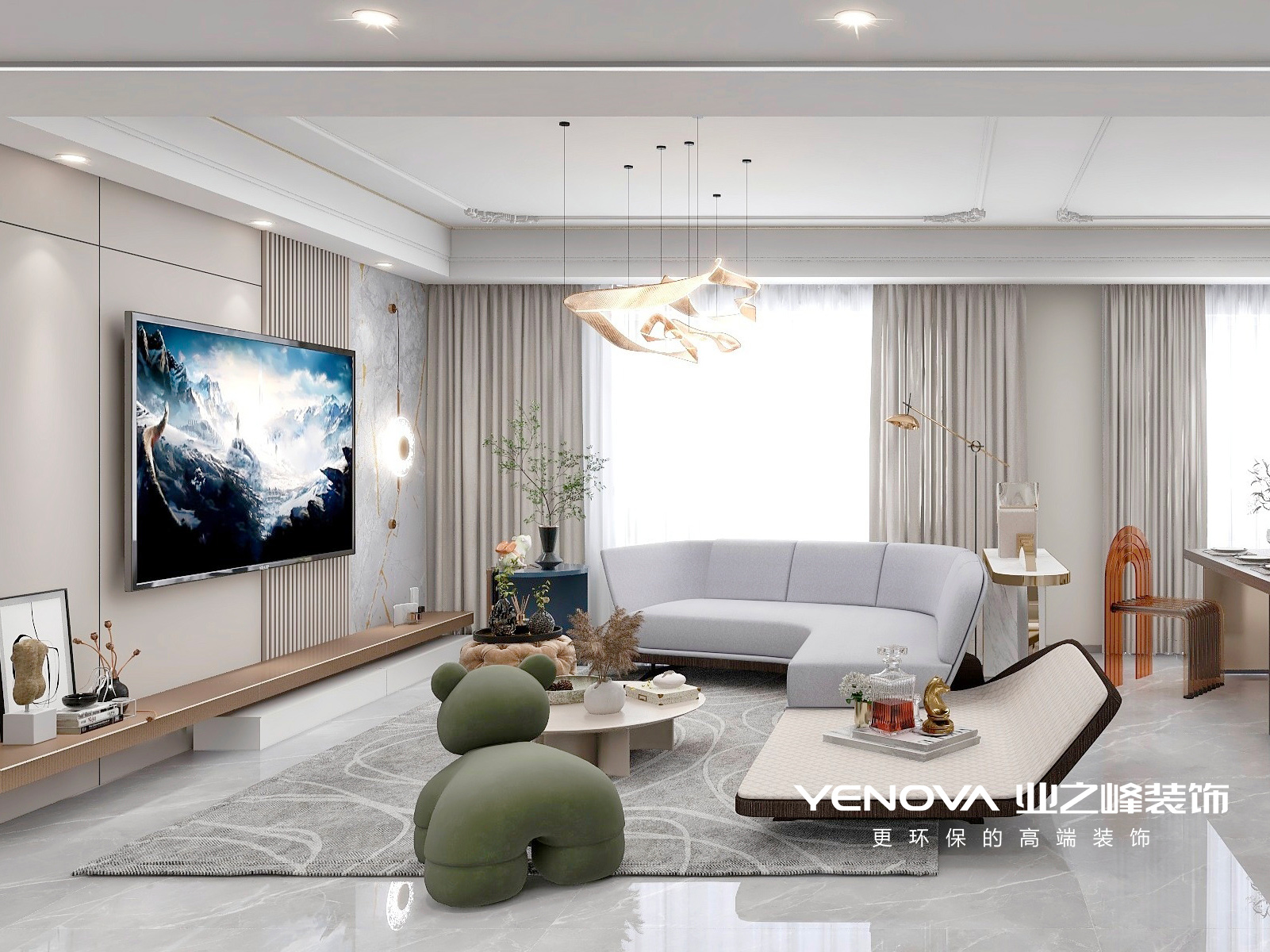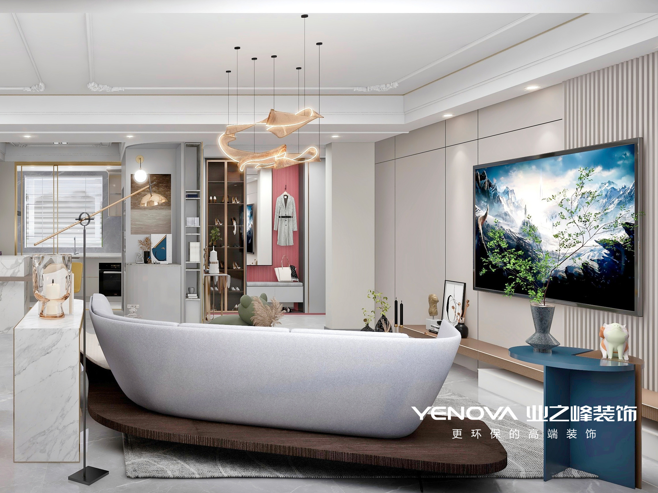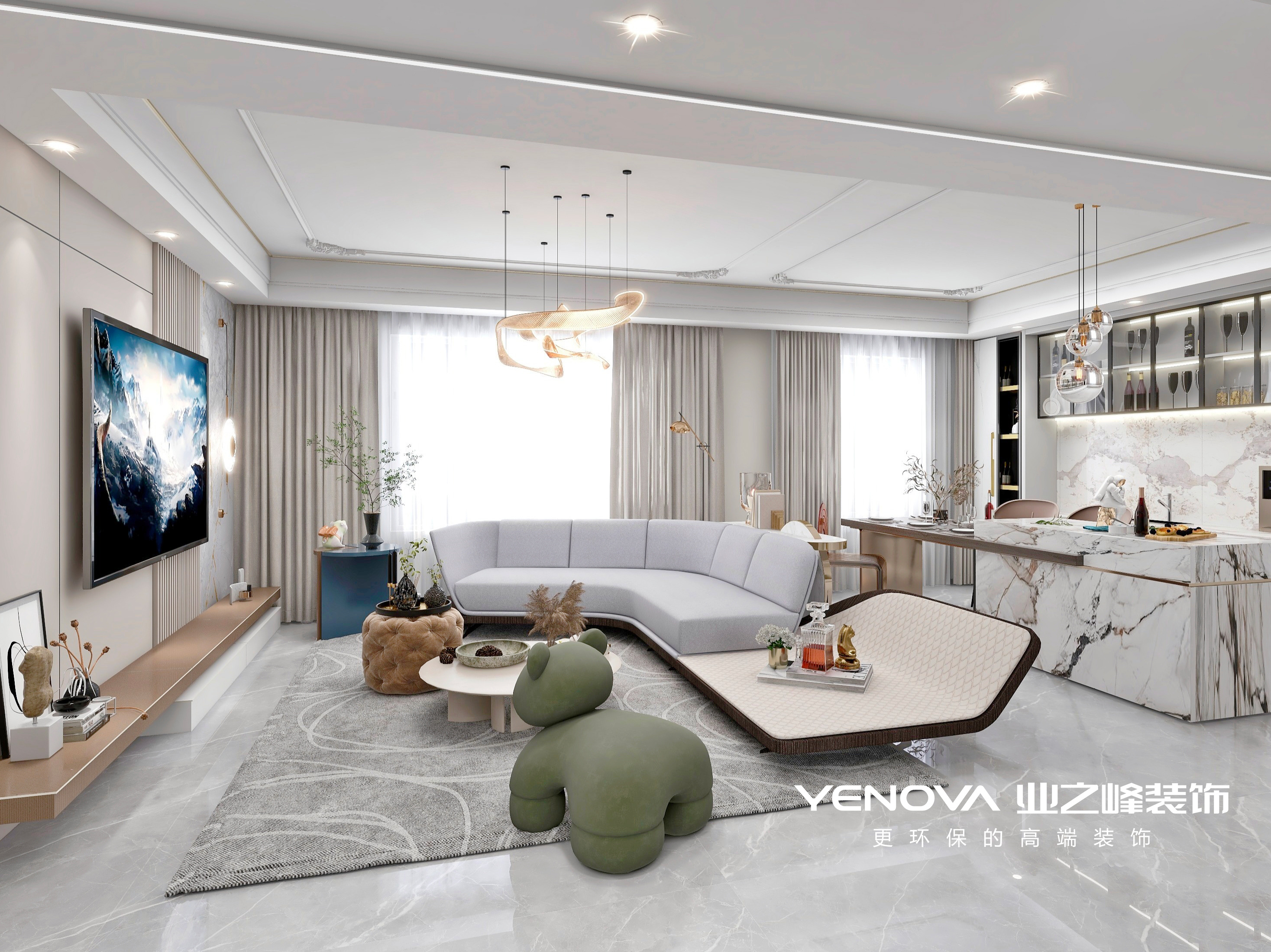 通过与业主交流,得知业主比较喜欢轻奢风格的感觉。业主不喜欢太过明亮的颜色,喜欢低调的色调,最好是纯净一点干净的颜色。所以我们会在装饰以及选材的材质上透露出干净又不失轻奢。主要通过色彩和配饰上的搭配来展现轻奢。客厅运用米白色为主色调和一些金属线条的点缀,体现出了精致,低调和内敛的气质。客厅吊顶中采用细小的雕花,轻奢中又带一丝细腻之感,西厨与中厨的结合,以及吧台的运用,让整体画面感丰富,不再那么单调卧室运用米白色,浅灰色和象牙白色系,整体色调统一,木质的背景墙以及转角衣柜让人感觉舒适又安逸。吊灯和基础照明不需要过多的装饰,简约大气正体现了业主的需求。