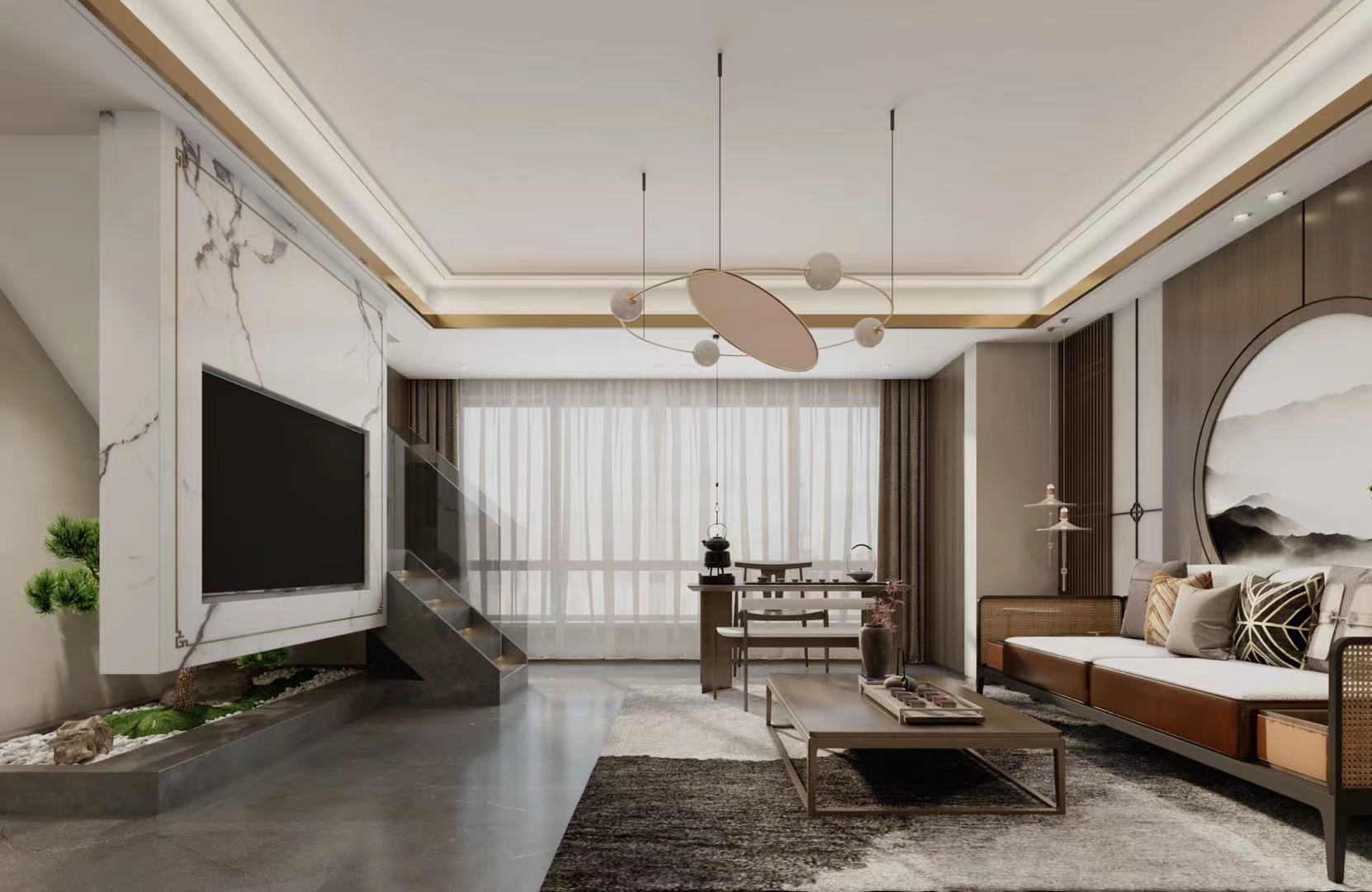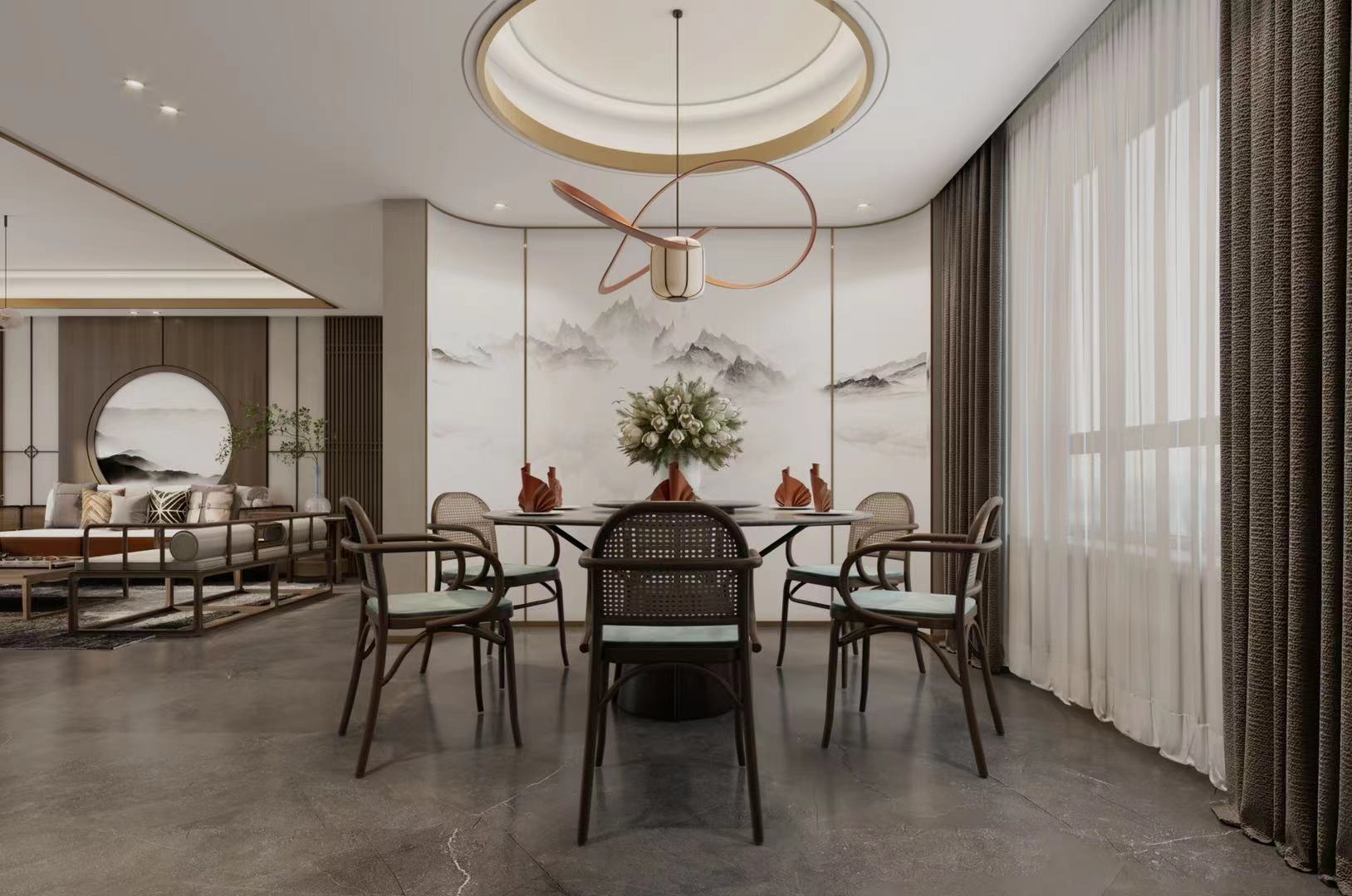 小区:金山盛和 面积:240㎡ 户型:复式 风格:新中式风格