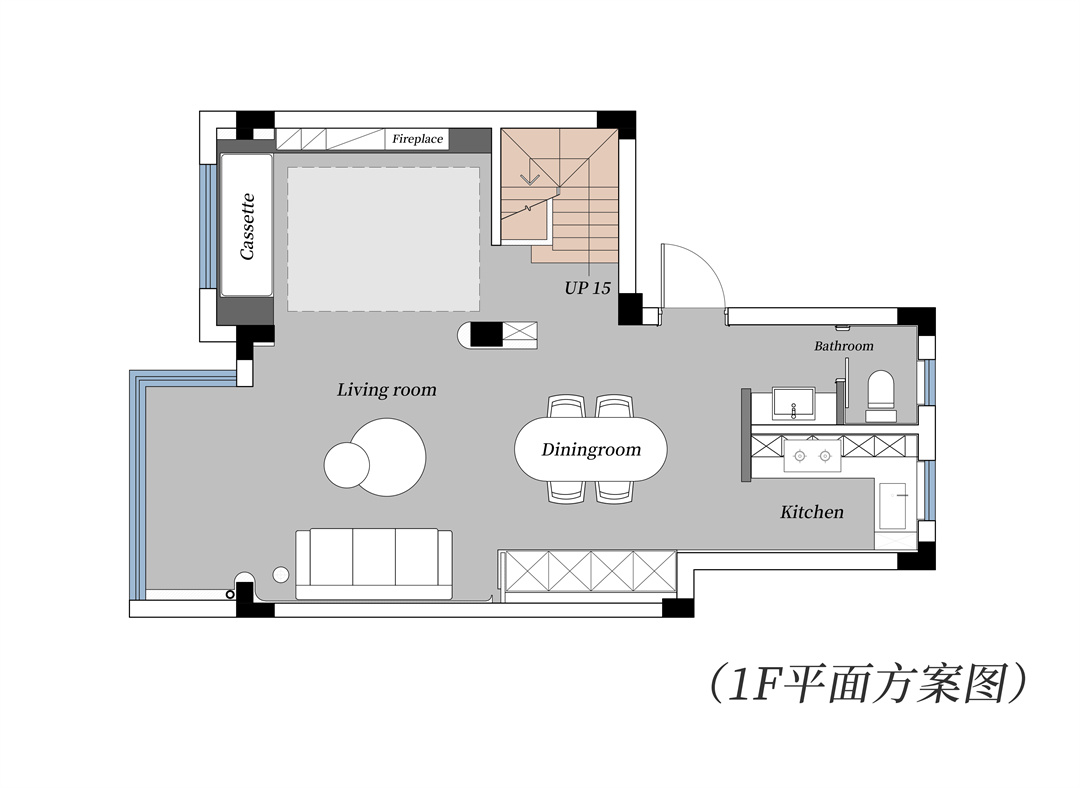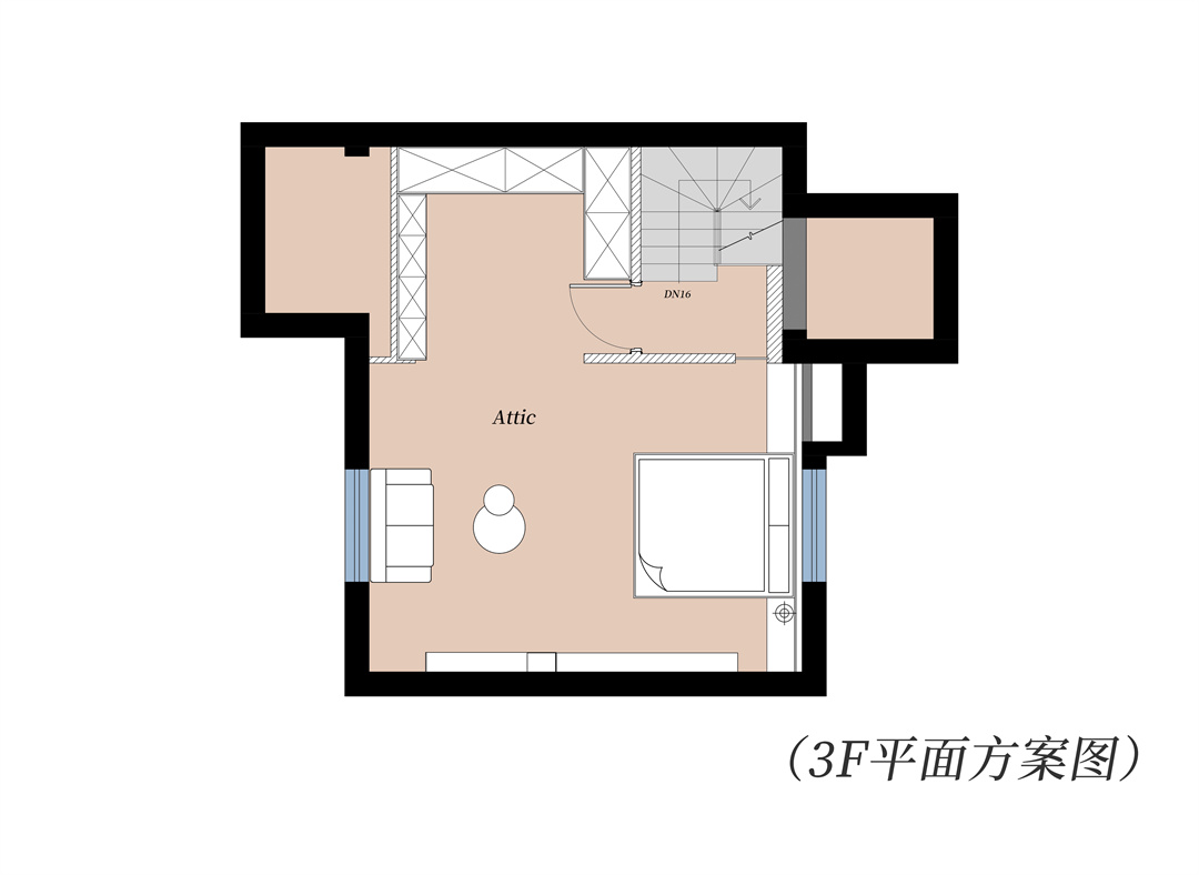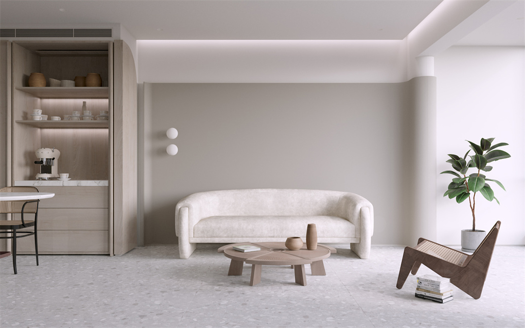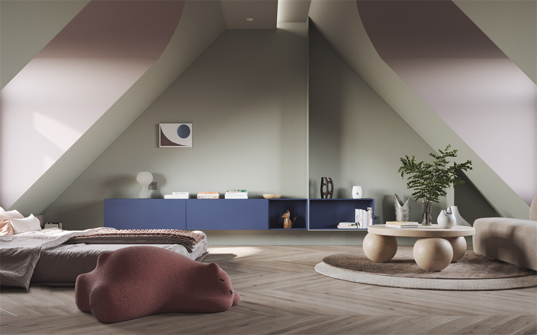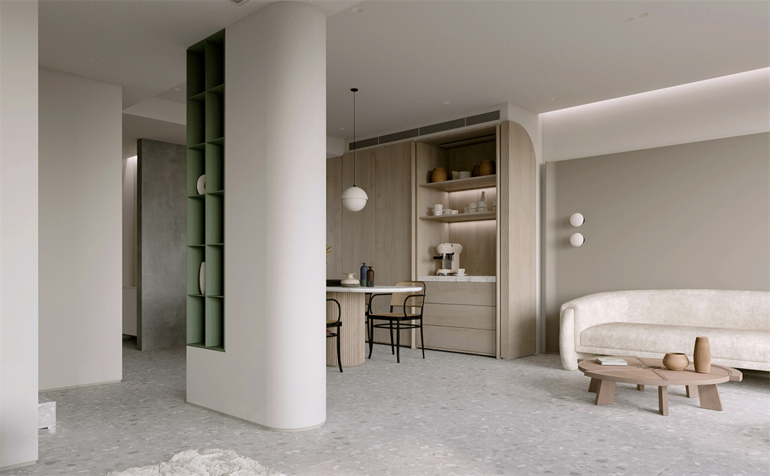 在“去风格化”的主流趋势下,我们避开软硬装营造的空间,而是斟酌结构之间的比例、层次、透视、感受,增进人与家的亲密关系。沙发后,用相对柔美的弧形结构处理了阳台的承重柱,视觉上扩大了客厅的空间,又契合了女主人的柔美与优雅;弧形的“卡其”用色又中和了一些男性空间的感受;原木色的家具定调家的亲切与质感,轻薄扶手的白色沙发和壁灯强化优雅。客厅与餐厅的联动。精心挑选的餐桌让整个空间既不单调亦不拥挤。餐厅。无论是色彩、功能性,餐桌、软装、球形吊灯都不失亲切与品质感,橱柜也别有洞天。整个空间相通相连,却不失神秘感和对空间的思考。副厅是让一家人精神愉悦的空间,在寒冷的冬日里围坐在壁炉旁或躺或坐,看书、休闲、交流,或许这才是生活中最美好难得的诠释,才是家的样子。卧室。灰色和经典蓝的结合让空间变得神秘、静谧;空间延续整体的弧形结构,产生直观的细腻感受;顶部圆角矩形状灯带增添整体层次感,同时足以在夜间温暖人的感官。书房迎合新时代下的新态度,脱离一成不变的古朴,成熟的色彩不会扰乱思考的过程,反而促进创意和思维乐趣的发生。阁楼在原结构的基础上发挥了最大的可能,保证结构层次感的同时也让两侧的自然光充分照射进房间;整体饱和度降低从而营造氤氲的氛围,无论是阳光和煦的下午还是华灯初上的夜晚,坐在沙发/床上阅读或者休息都能获得极佳的身心体验。