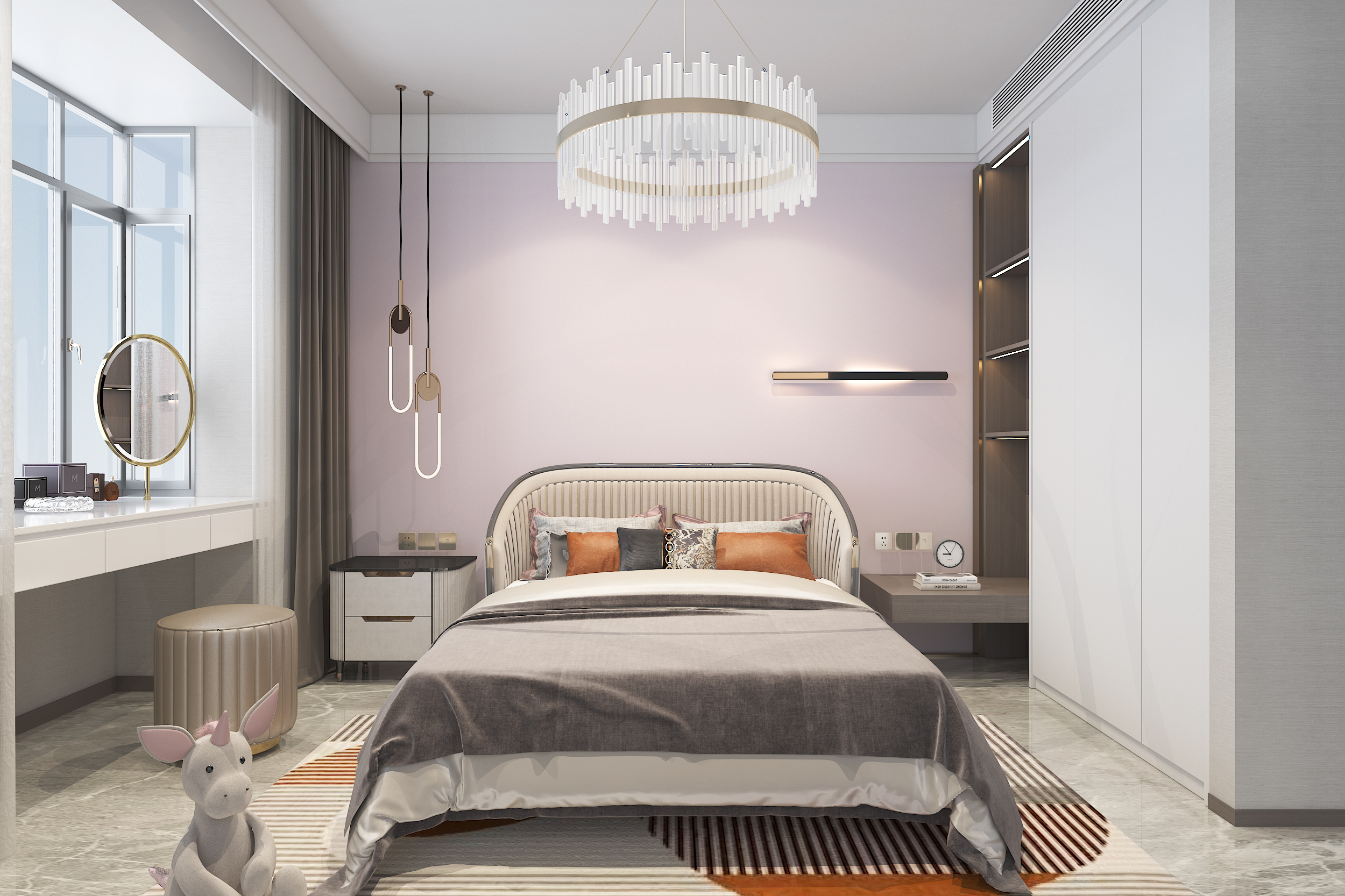 夫妻俩年纪在三十岁上下,所以想法比较多,要的也多,比如开放式厨房,无主灯设计等,但同时女主人要求卧室比较少女点,同时客厅不要乱乱的感觉,所以在颜色搭配上也下了不少功夫。