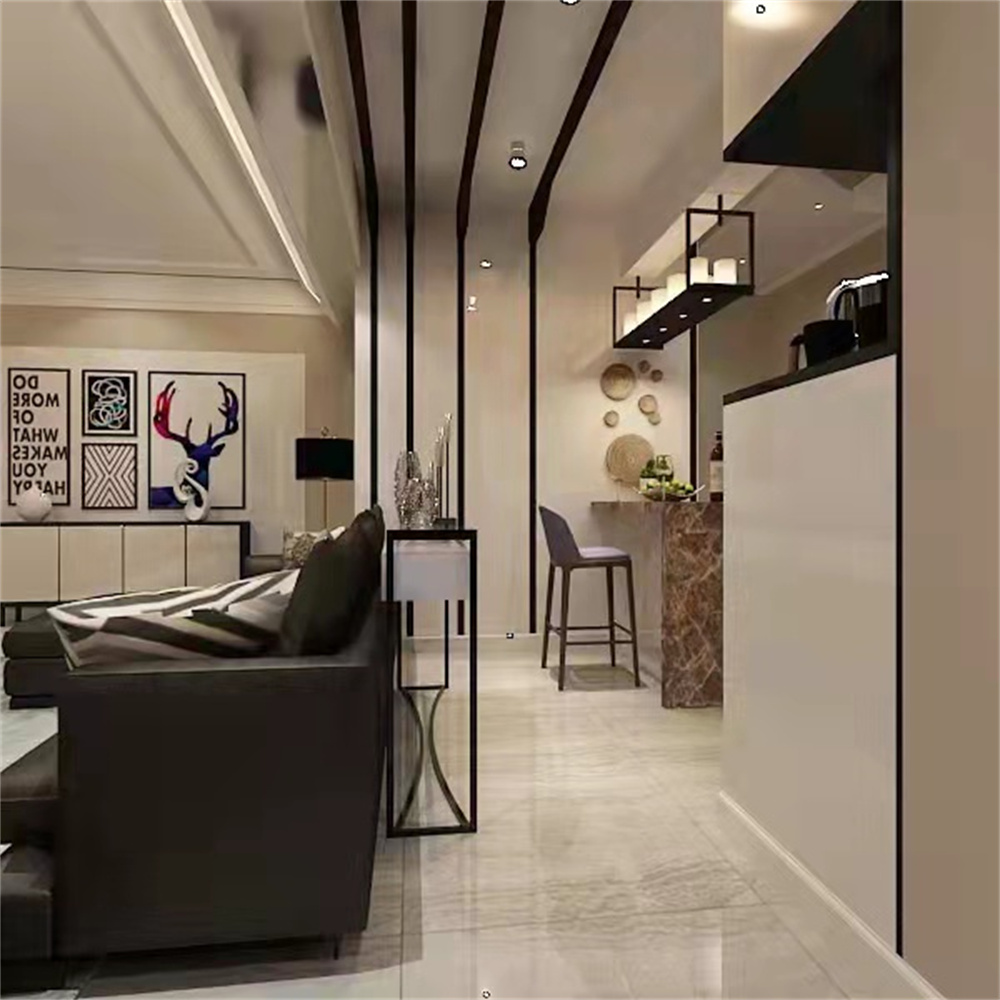 本案例是以现代简约为主题设计,在整个沟通过程中,了解了客户的真实想法、发掘其内心真实所需,客户是一位追求生活情趣与调性的女士,想要黑色的神秘又不想整个空间过于压抑,所以在整个空间的设计中将黑与的白融入 ,用彩色地毯与挂画调节整个空间的柔和度,沙发墙加入了洗墙灯来增加层次感,让主人回到家躺在舒适的沙发上可以卸下一天工作的包袱,轻松愉悦的享受生活,感受大自然