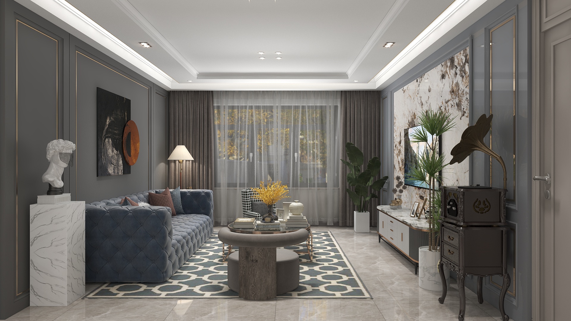 118㎡三居美式风格泰林黄河馨苑