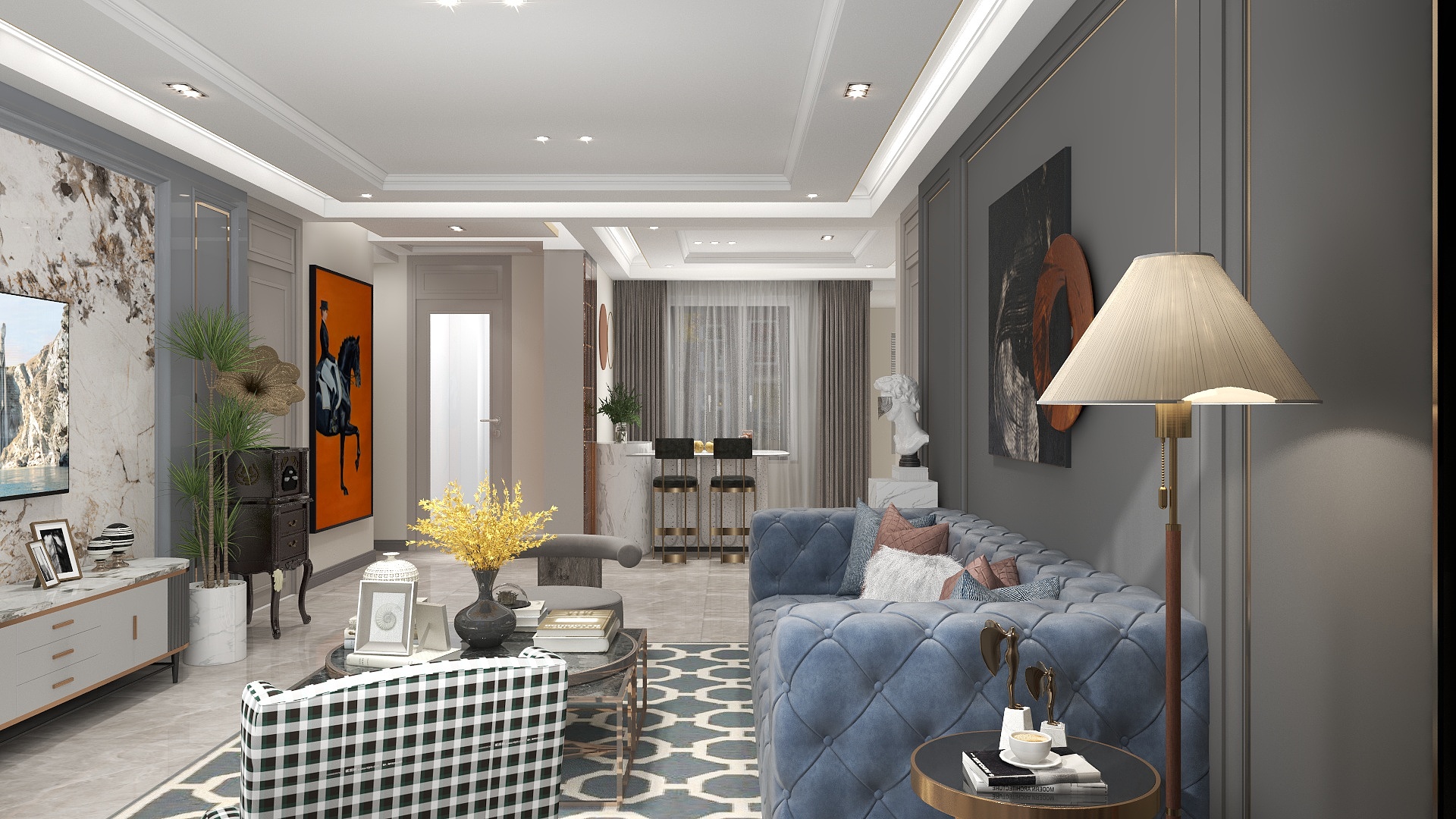 130㎡三居美式风格高铁熙悦府