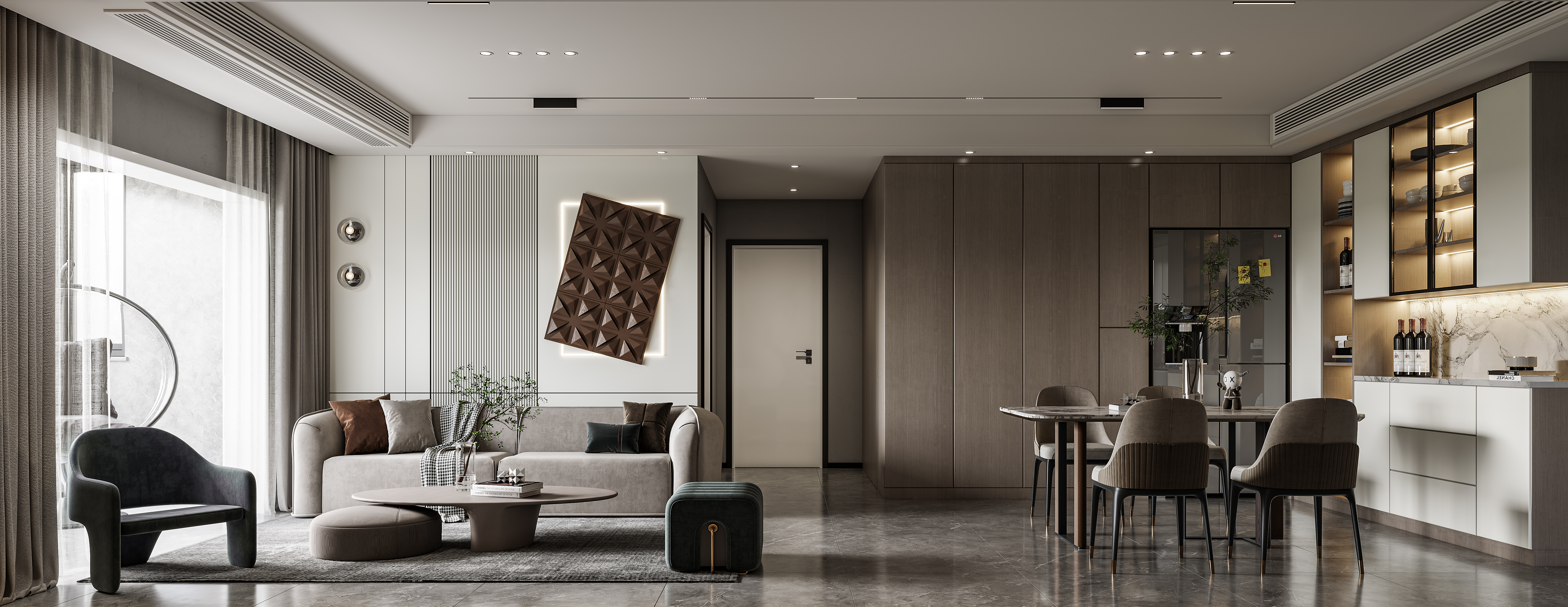 小区:滨江雅园 面积:127㎡ 户型:三居 风格:现代简约风格