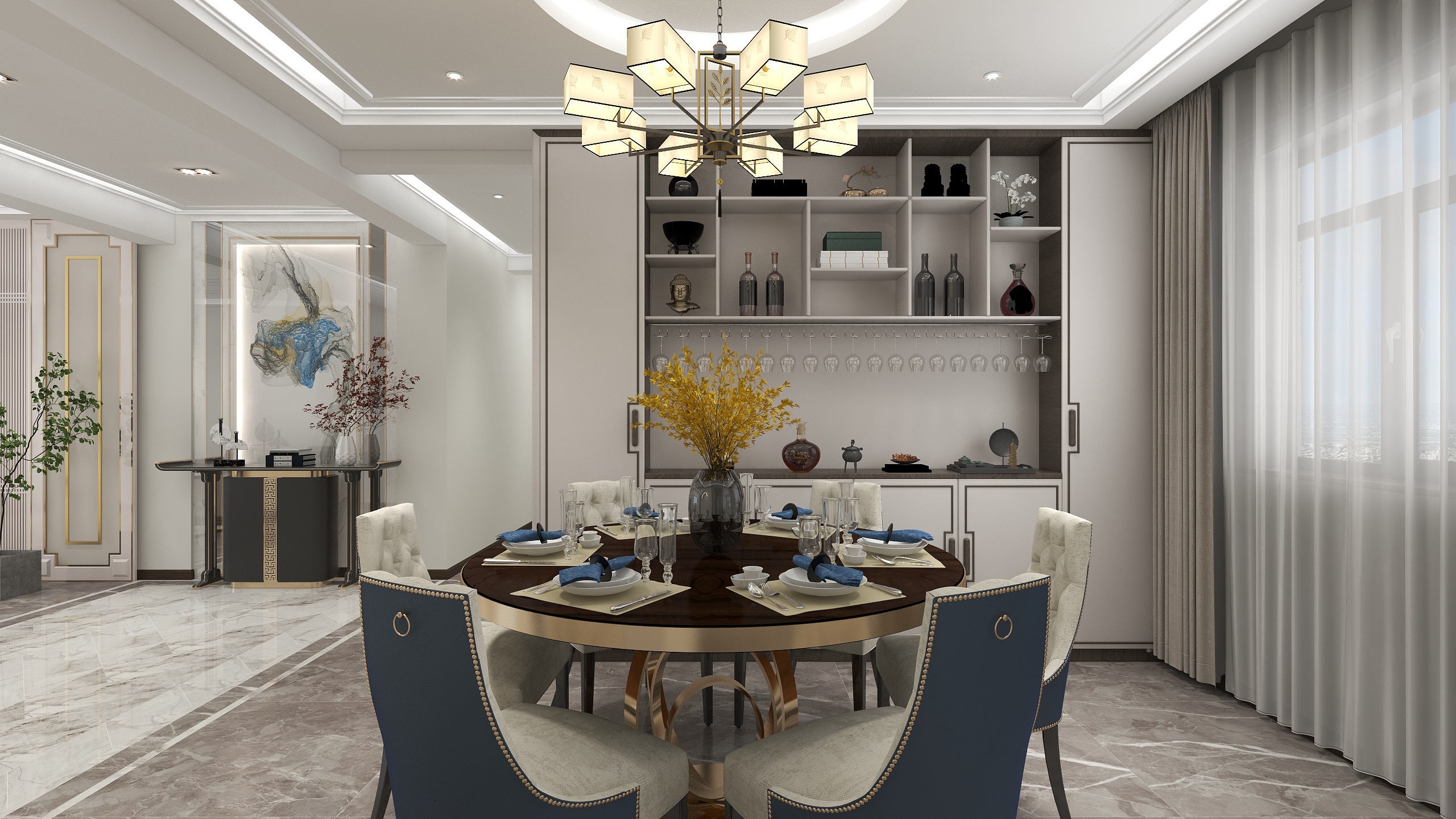 小区:紫美雅和 面积:162㎡ 户型:四居 风格:新中式风格