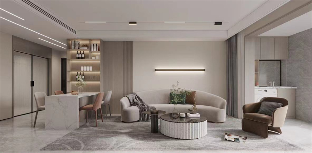 本方案是以当下流行的现代极简无主灯为主题设计,整体功能规划设计以简洁时尚为导向。体现年轻女性的对现代的追求,在追求时尚的同时融入了一定生活化。在整个洁白的空间里,增加了浅木色与部分石材为元素来体现空间的层次感,赋予整个空间的简洁不失稳重。利用无主灯的点光源给整个空间增加氛围感,让整个空间有一定的情调