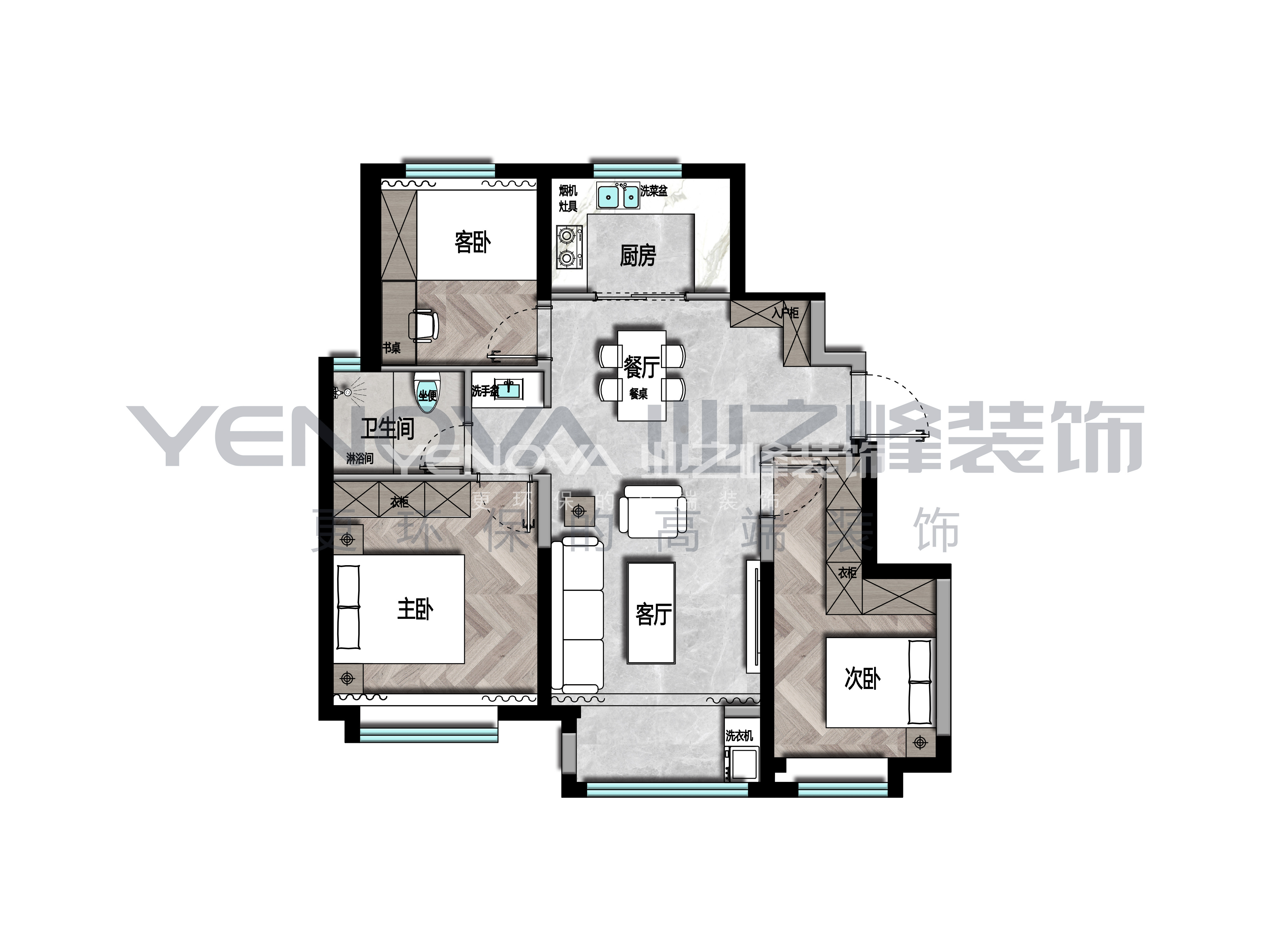 小区:金地悦城大境 面积:75㎡ 户型:三居 风格:轻奢风格