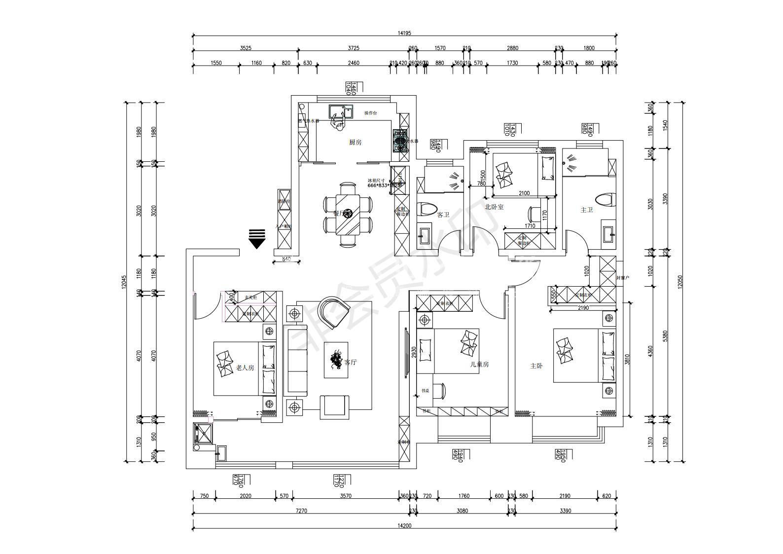 小区:金汇瀚玉城 面积:137㎡ 户型:平层 风格:现代简约风格