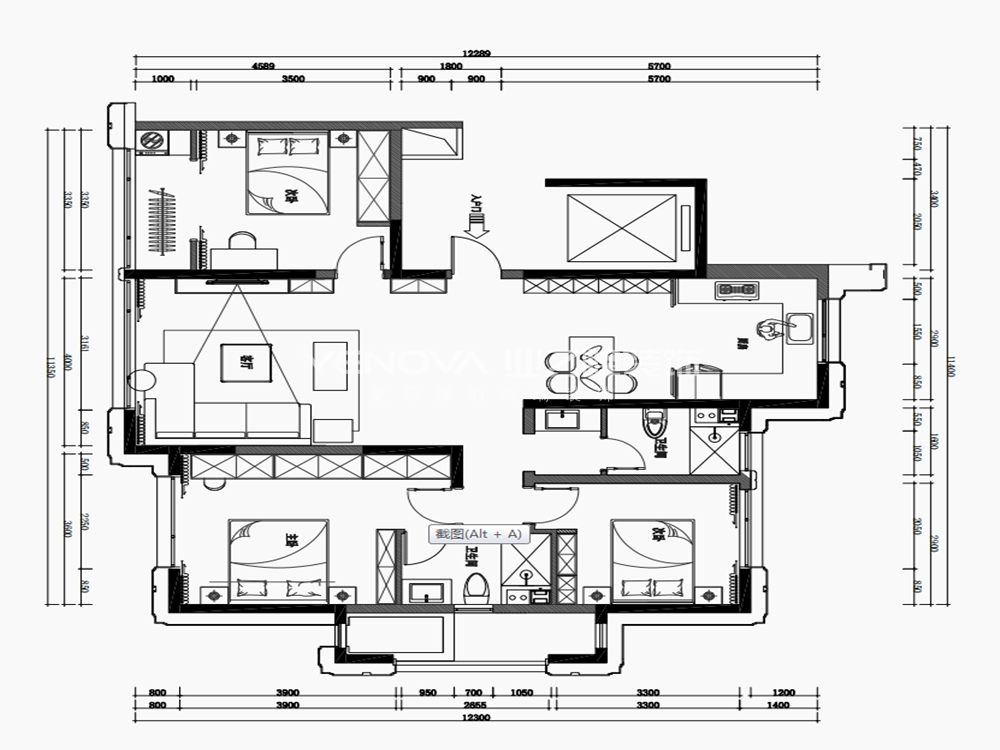 小区:绿城海棠印月 面积:100㎡ 户型:三居 风格:现代简约风格