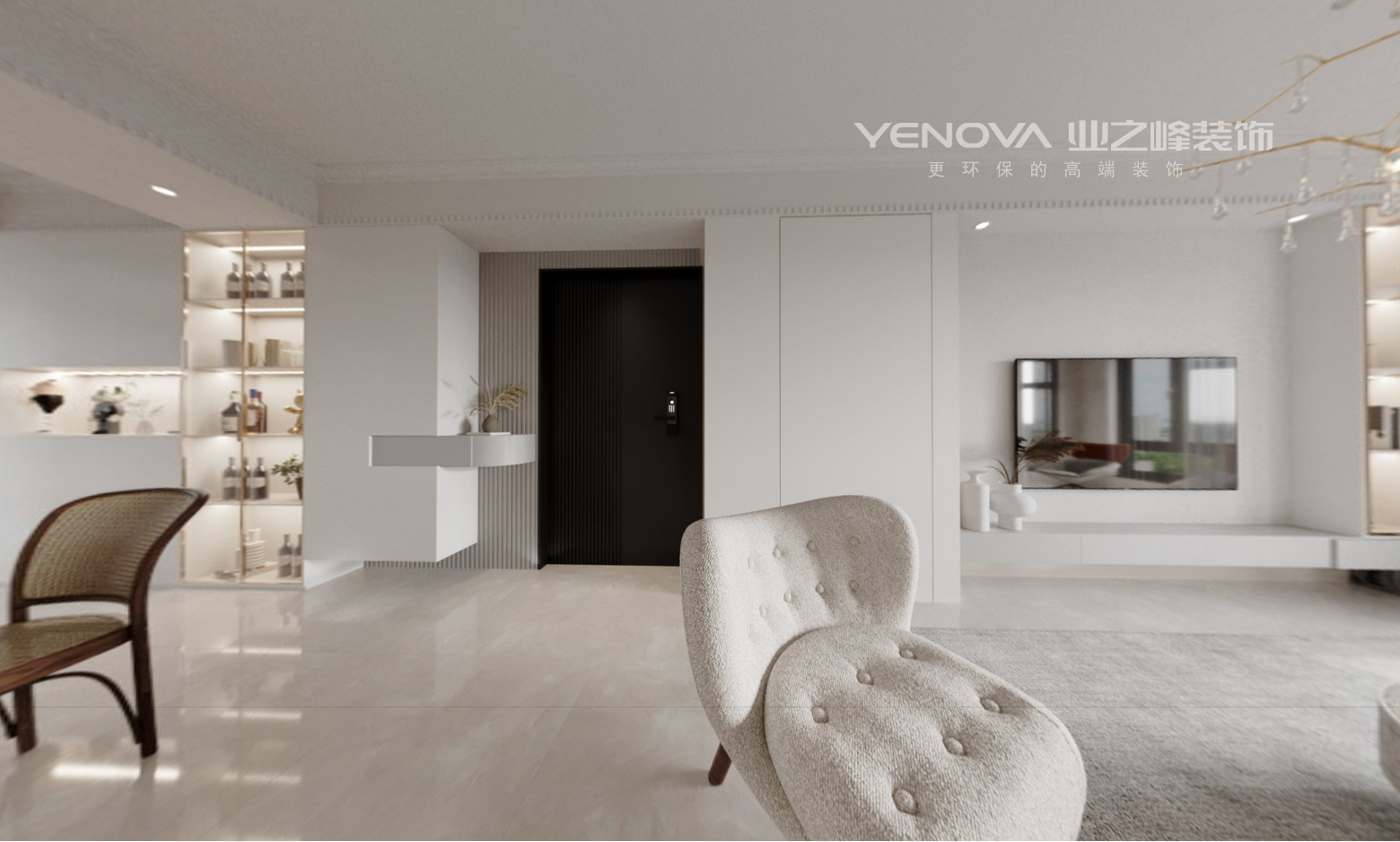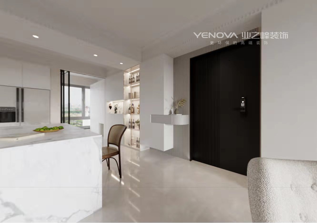 这是来自于毛坯房的一个案例。因为是新房子改造,设计师在户型规划上更加慎重,增加更充足的收纳空间,解决入户没有玄关柜的问题,因女主人偏向于温馨自然的风格,所以在整体风格上偏向现代简约的自然清新主义。