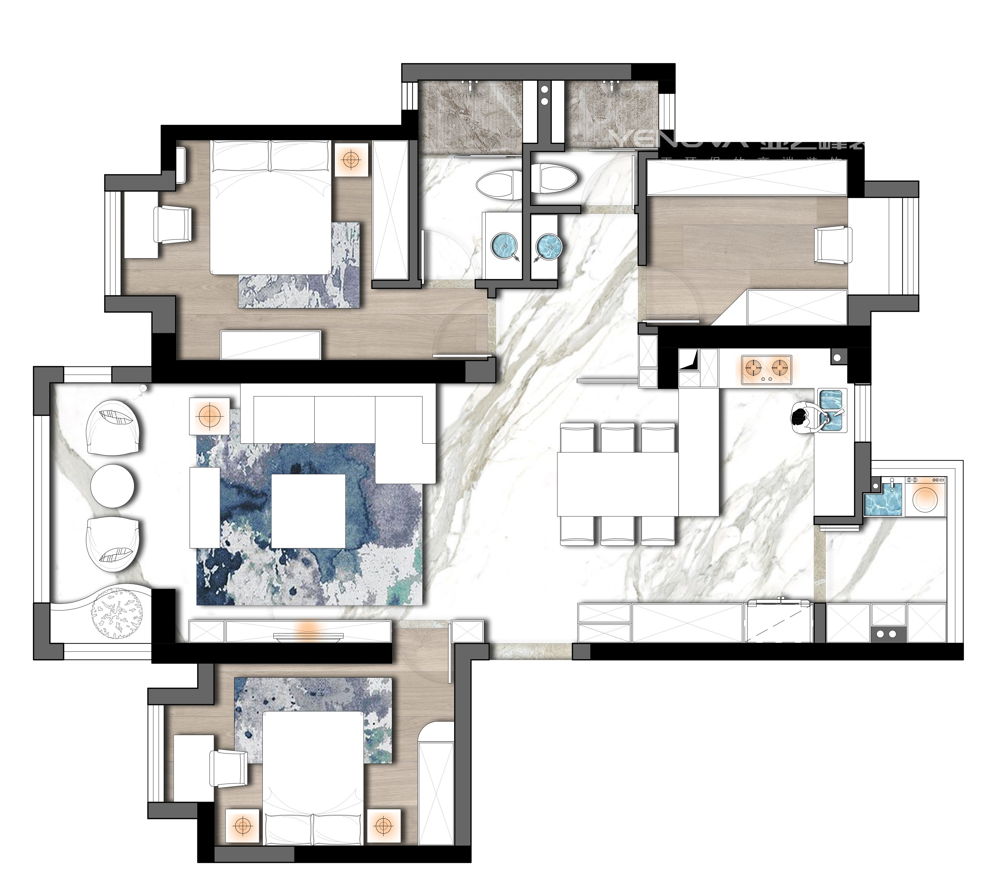 115㎡三居现代简约风格洺悦府