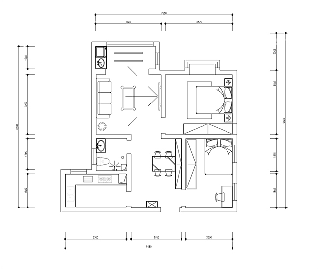 小区:润都锦园 面积:90㎡ 户型:二居 风格:轻奢风格