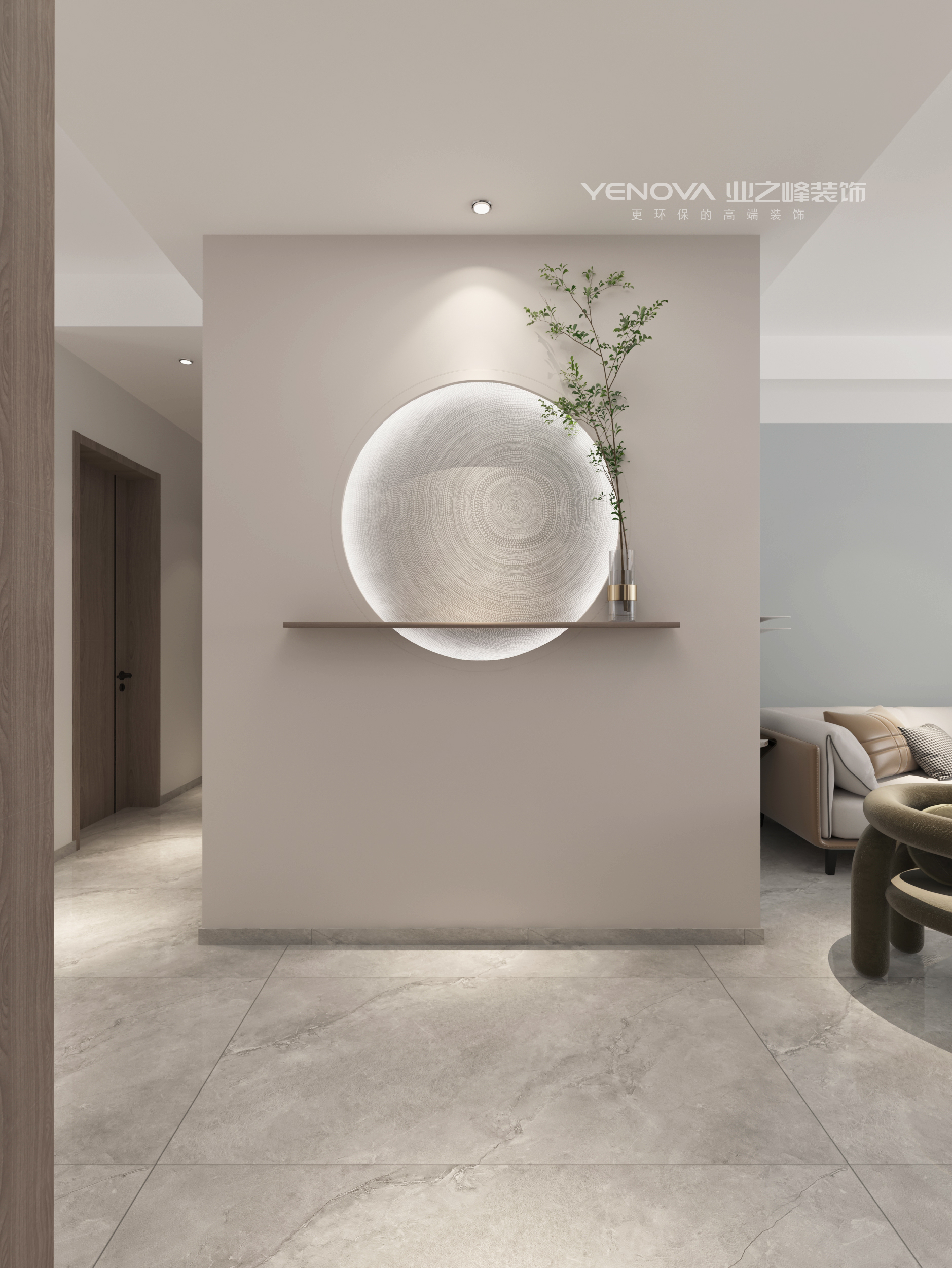 本案以现代简约为主要风格,硬装方面只做简单的处理,主要用软装装饰整个空间,材质的碰撞,使整个空间丰富,层次感分明。