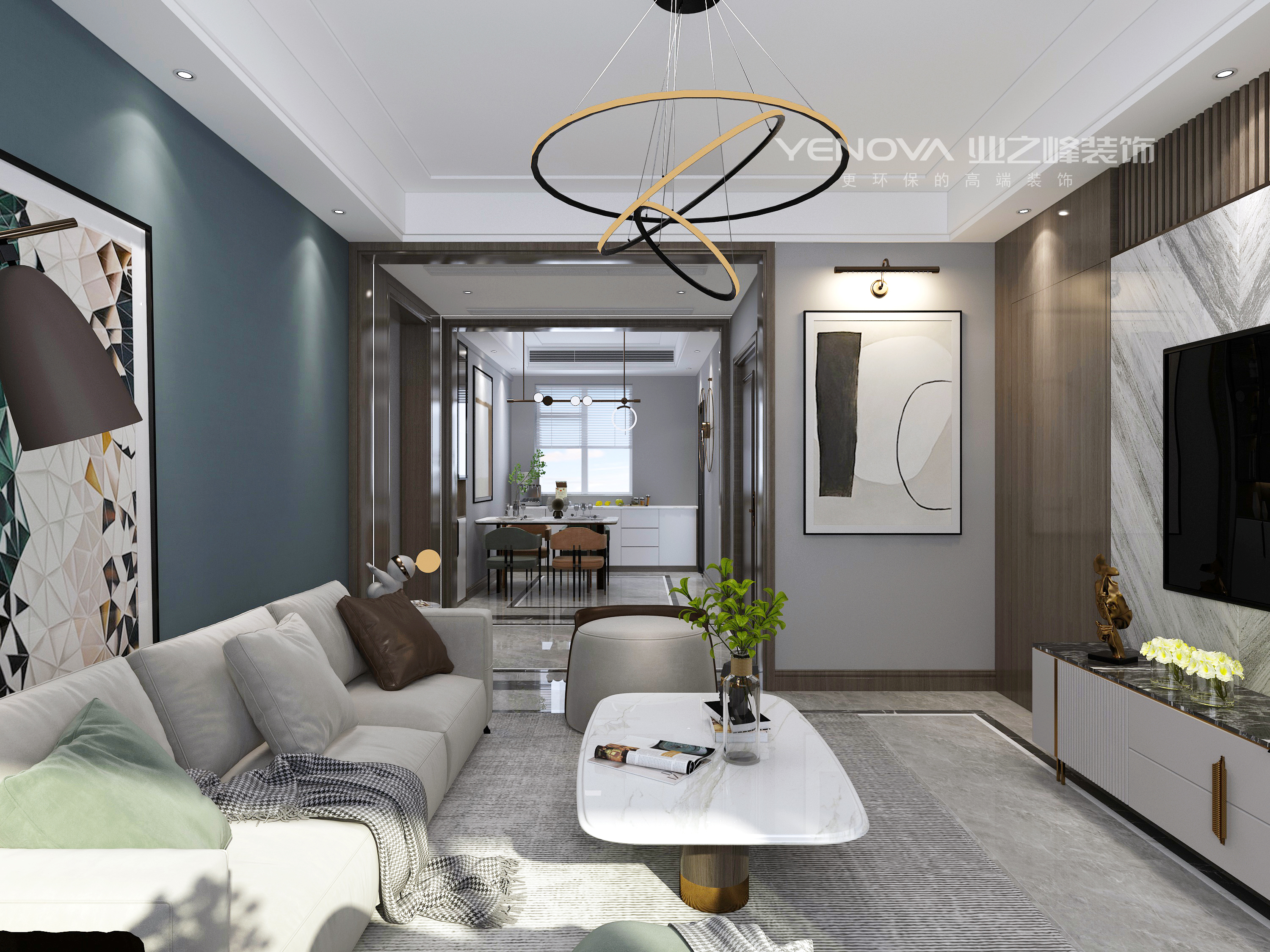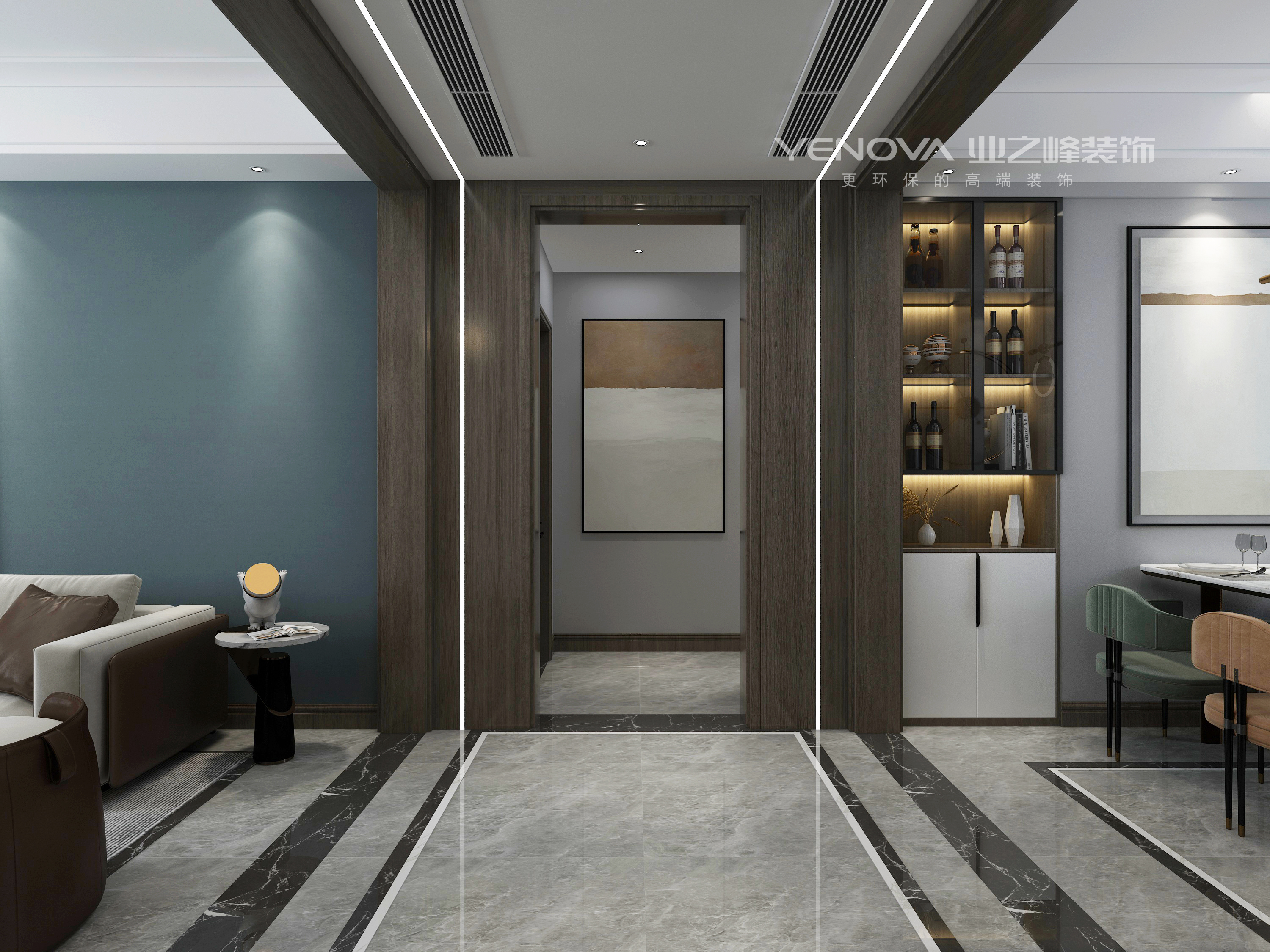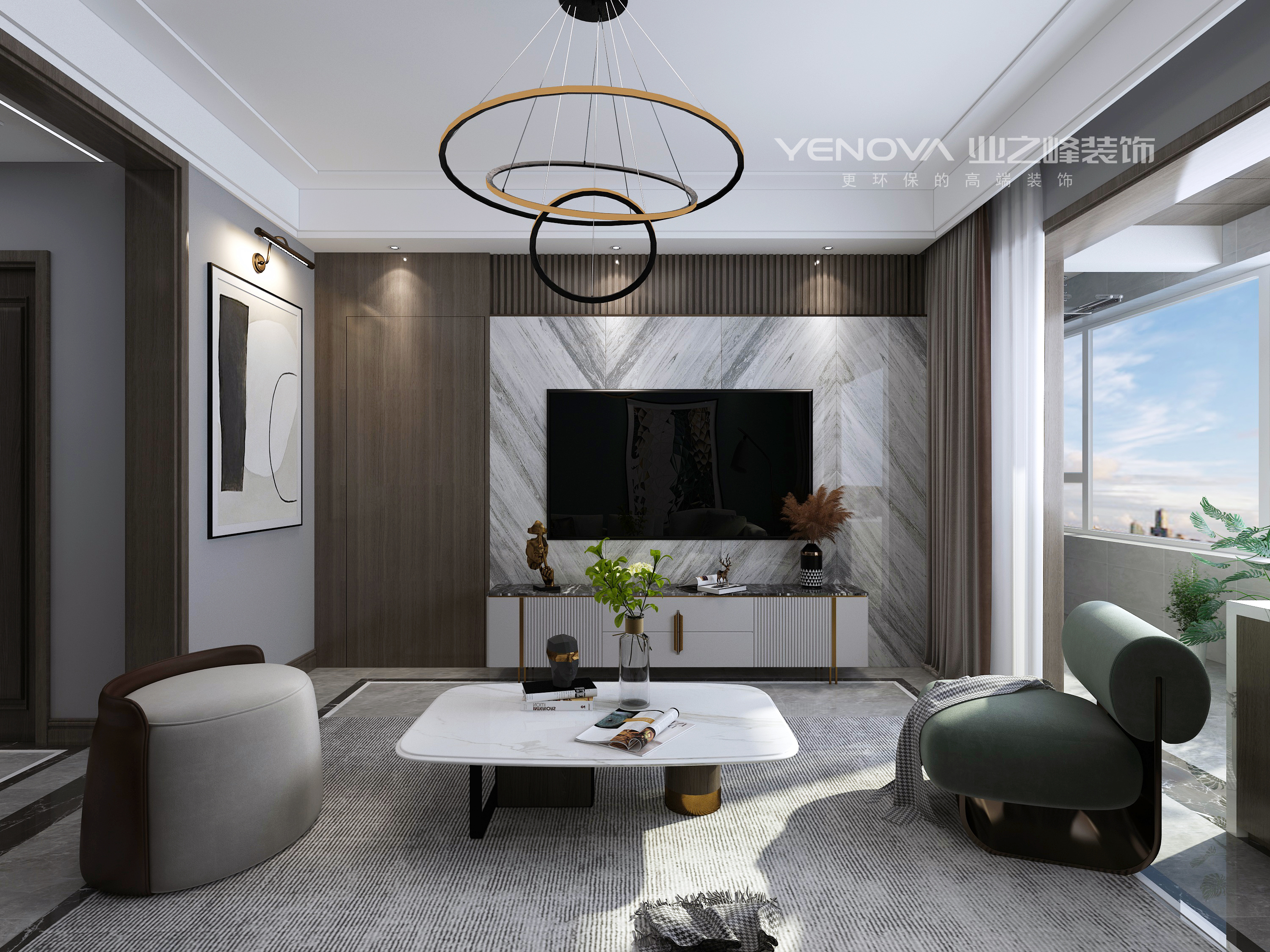 本案风格为现代简约风格,大面积以暖色调为主,影视墙岩板与木质进行结合,搭配部分墙体艳的颜色,以简洁大方,时尚,优雅,给人以温暖舒适的感觉。与每个人都熟悉的现代风格相比,它具有更多的品质和实际感,它揭示了生活的纯洁,它融合奢华与内涵的气质。