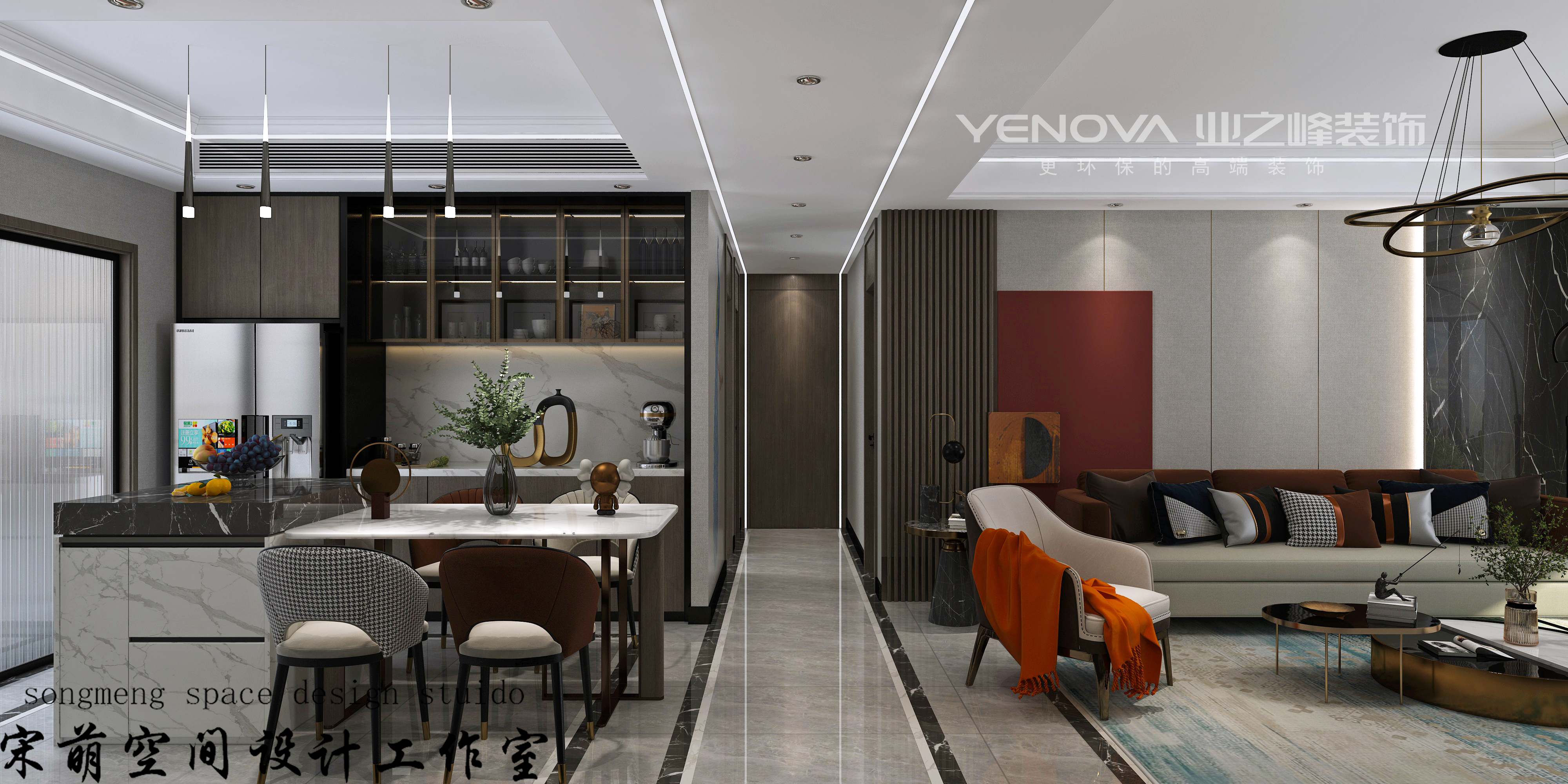 本案风格为轻奢风格,顶面跌级造型加以线性灯进行搭配,以简洁大方,时尚,优雅,给人以温暖舒适的感觉。与每个人都熟悉的现代风格相比,它具有更多的品质和实际感,它揭示了生活的纯洁,它融合奢华与内涵的气质。