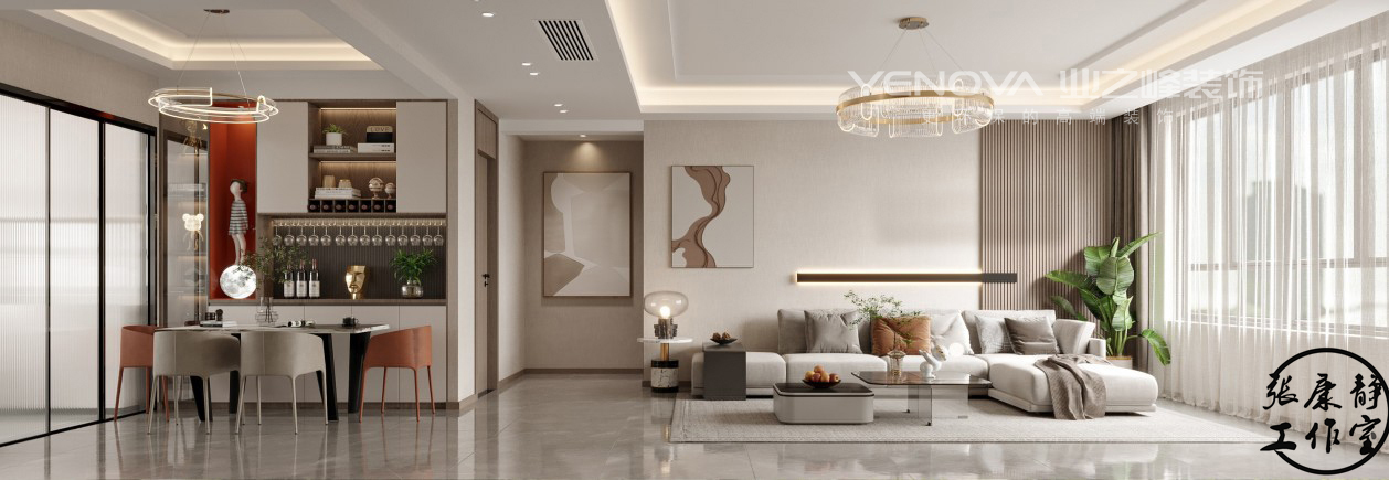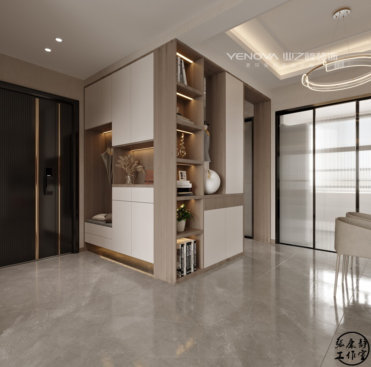 厨房与入户的改造,淡雅的壁布与木纹的结合,让整体的空间既有温馨又处处透漏出客户的底蕴,通过金属材质与时尚的软装搭配又将稳重的空间增加了灵活