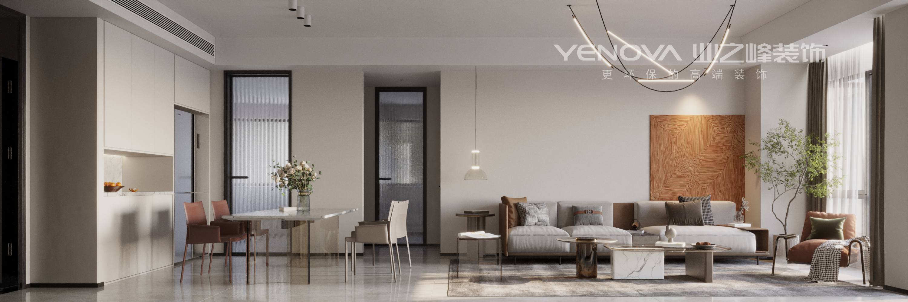 本案定位现代风格。在房间布局上没有太多改动,整体设计也没有太多造型,通过充足的光线,宽敞的面积,创造出舒适的居住环境。整体空间的布置重点在家具软装的选购和色彩搭配。在设计上主要通过材质和色调来营造一个时尚简洁舒适的居家氛围。