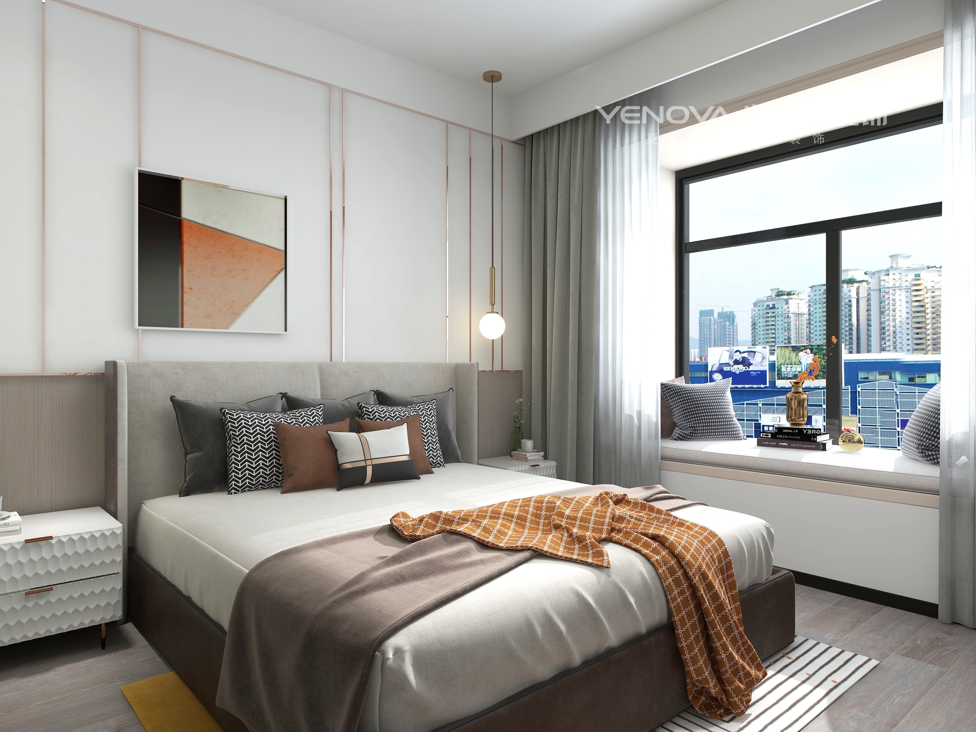 主卧没有做太多的造型,背景墙以简单的白色搭配成品线条,简单的造型,不简单的效果