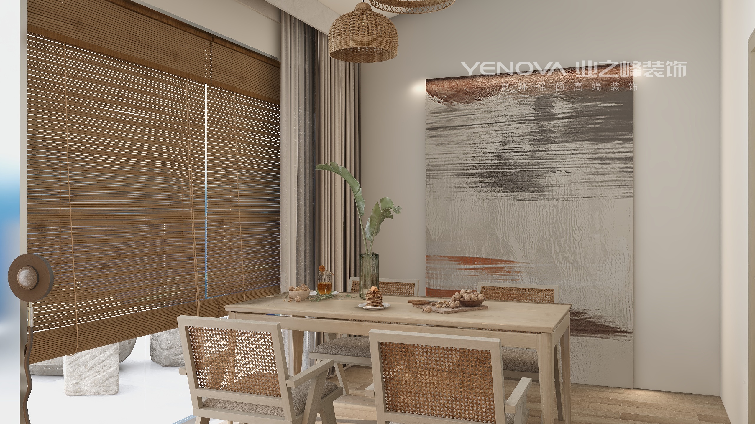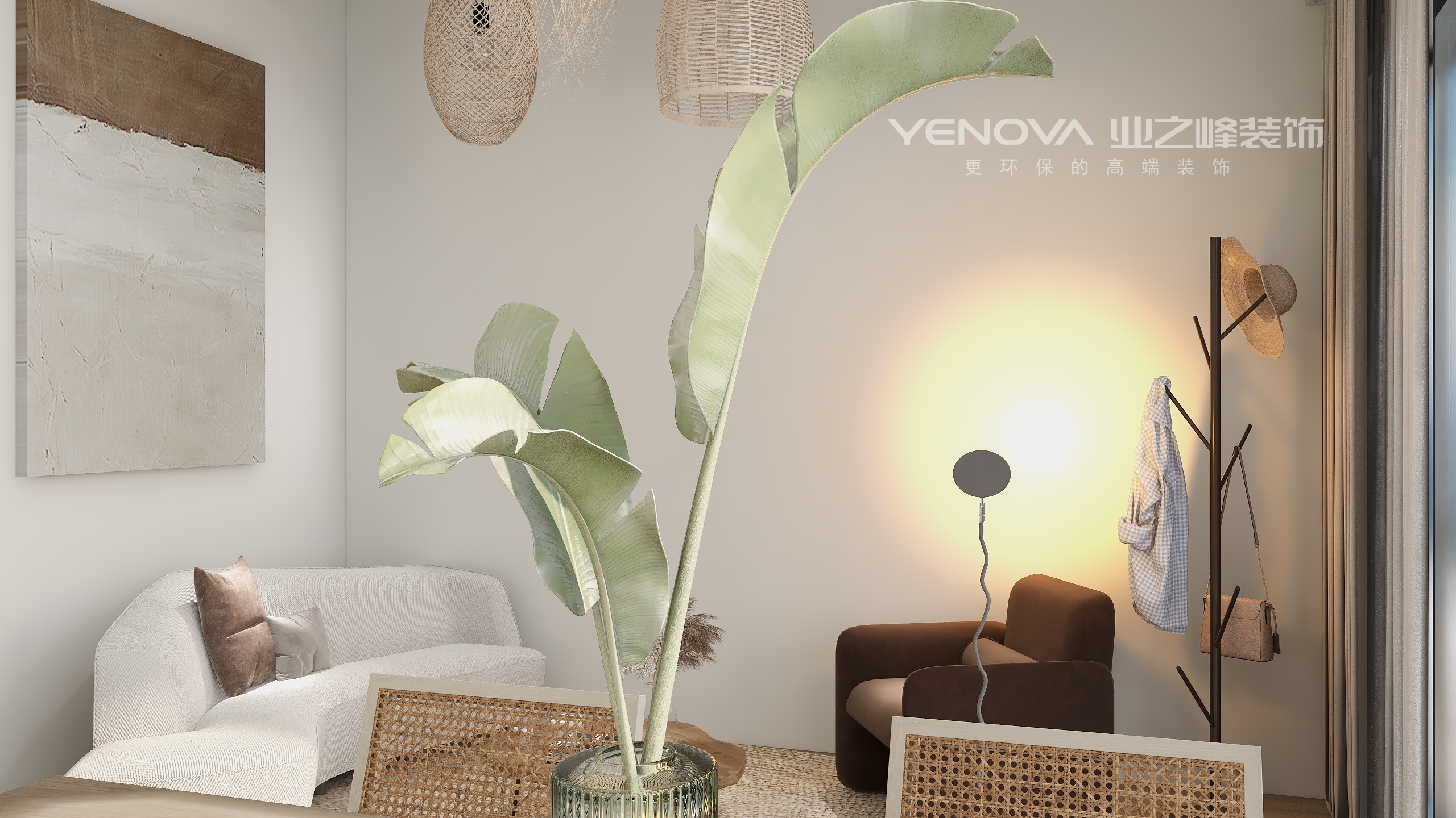 光线的切入,阳光的植入感,在放松的空间里显得是如此的舒适,衣帽架跟卷帘,如此的较小,展现出了客餐厅的风格色彩