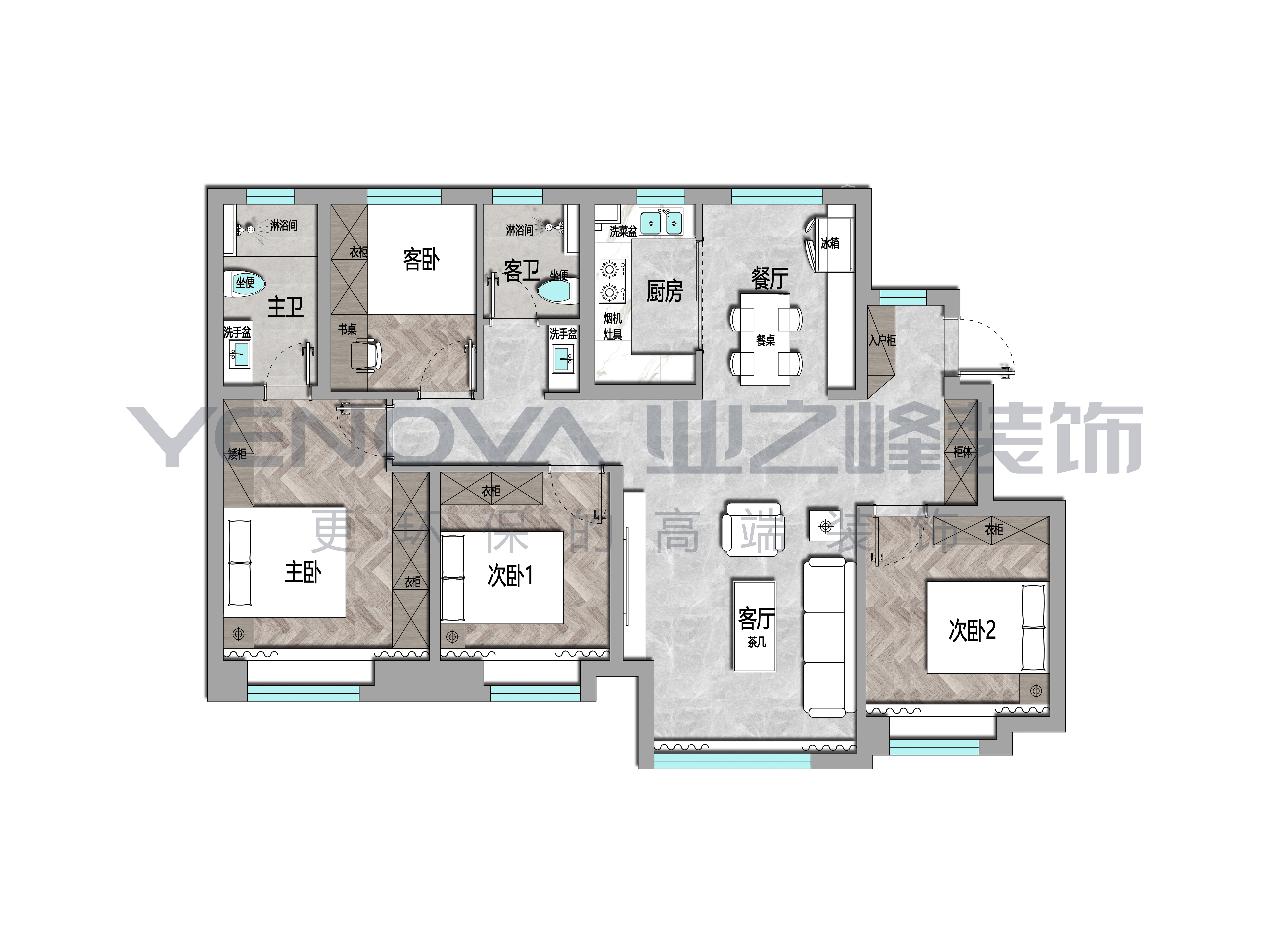 125㎡四居现代简约风格正荣府