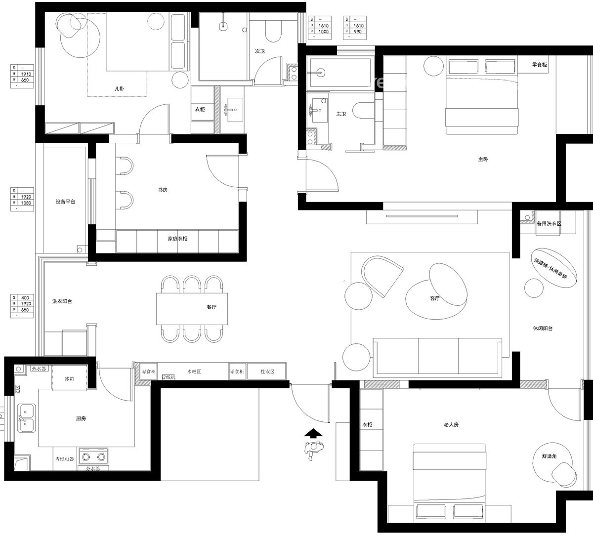 小区:地质家属院 面积:160㎡ 户型:四居 风格:现代简约风格