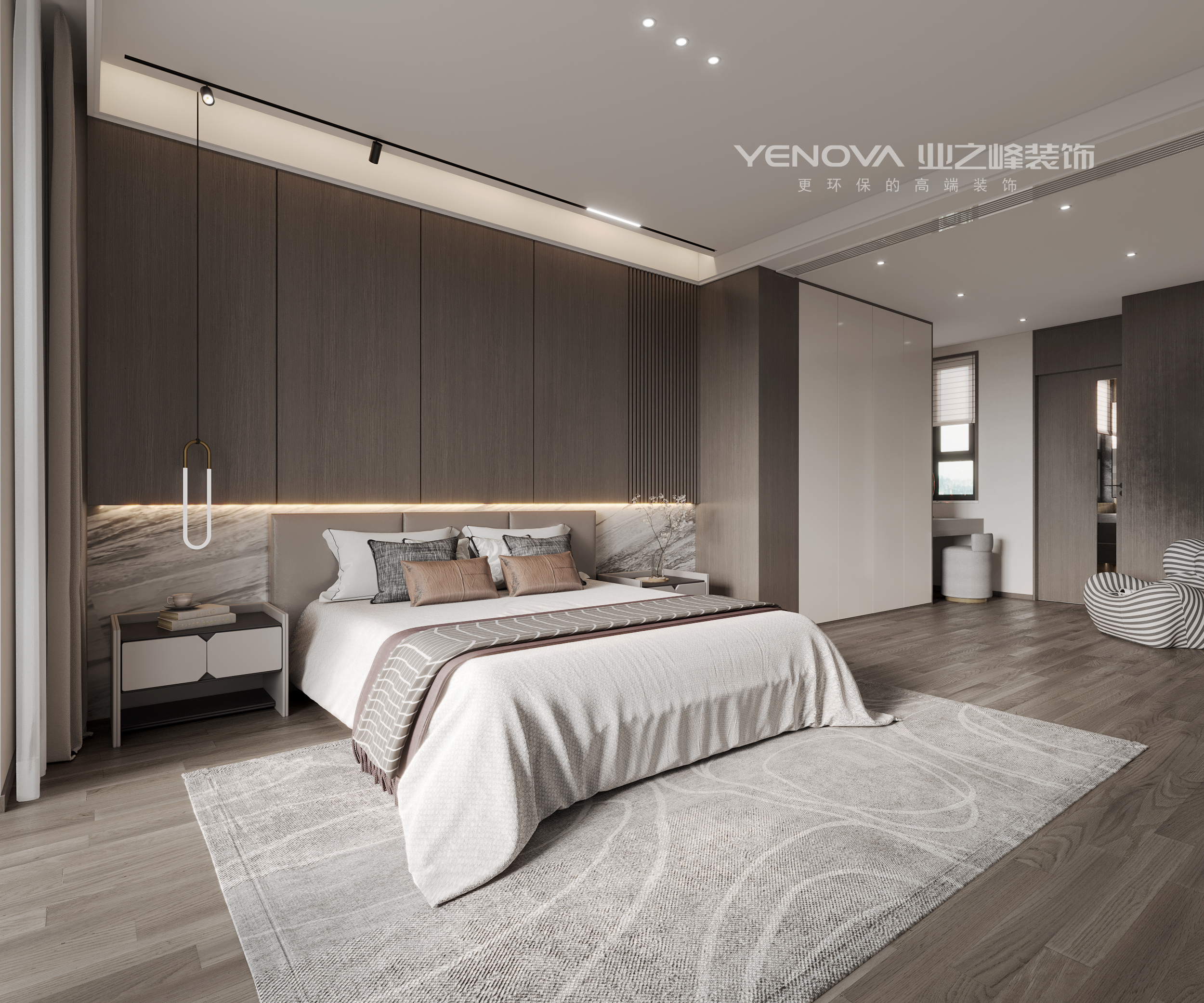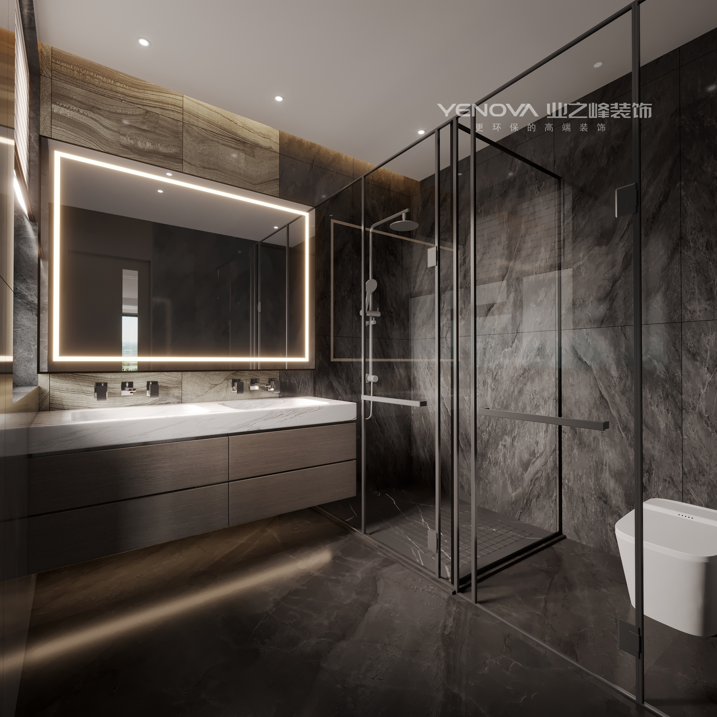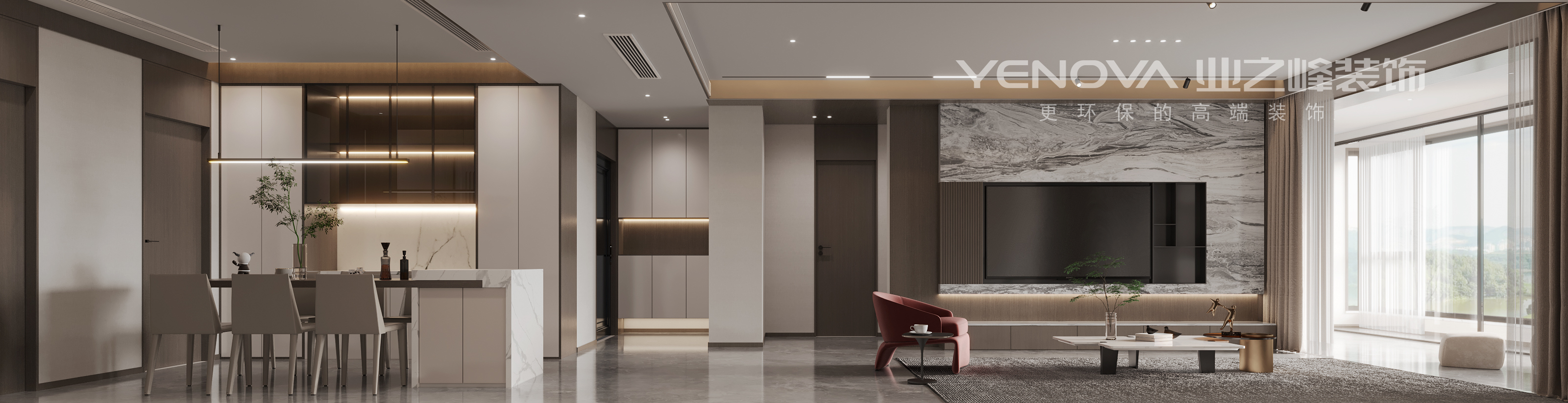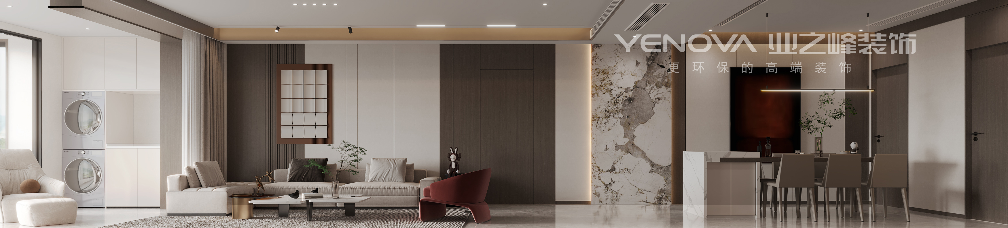 本次案例中,设计师将新潮的现代设计理念,融入不同材质在空间内的表现语言,汇总成生活的浪漫与精致。稳健大气的用色,深色的基调、硬朗的石材及软硬包造型的搭配,彰显出高档的生活格调。整体光源与墙面用材呈现的光影交集,营造出静谧悠长的居家氛围.